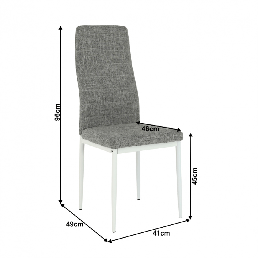Jídelní židle COLETA NOVA v barevném provedení světle šedá látka / bílé kovové nohy.