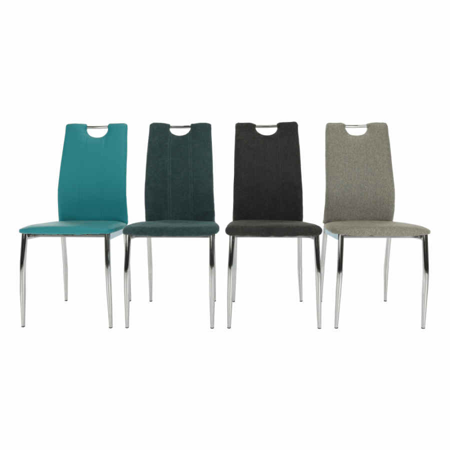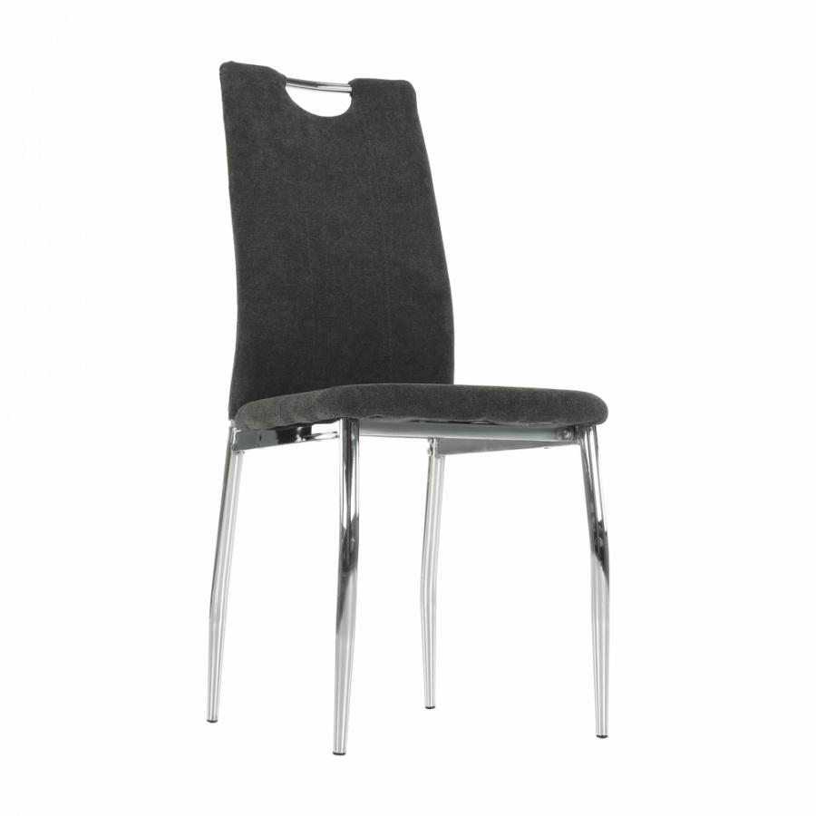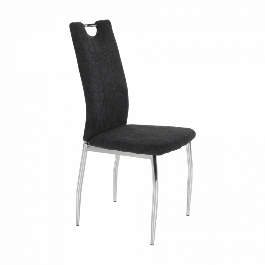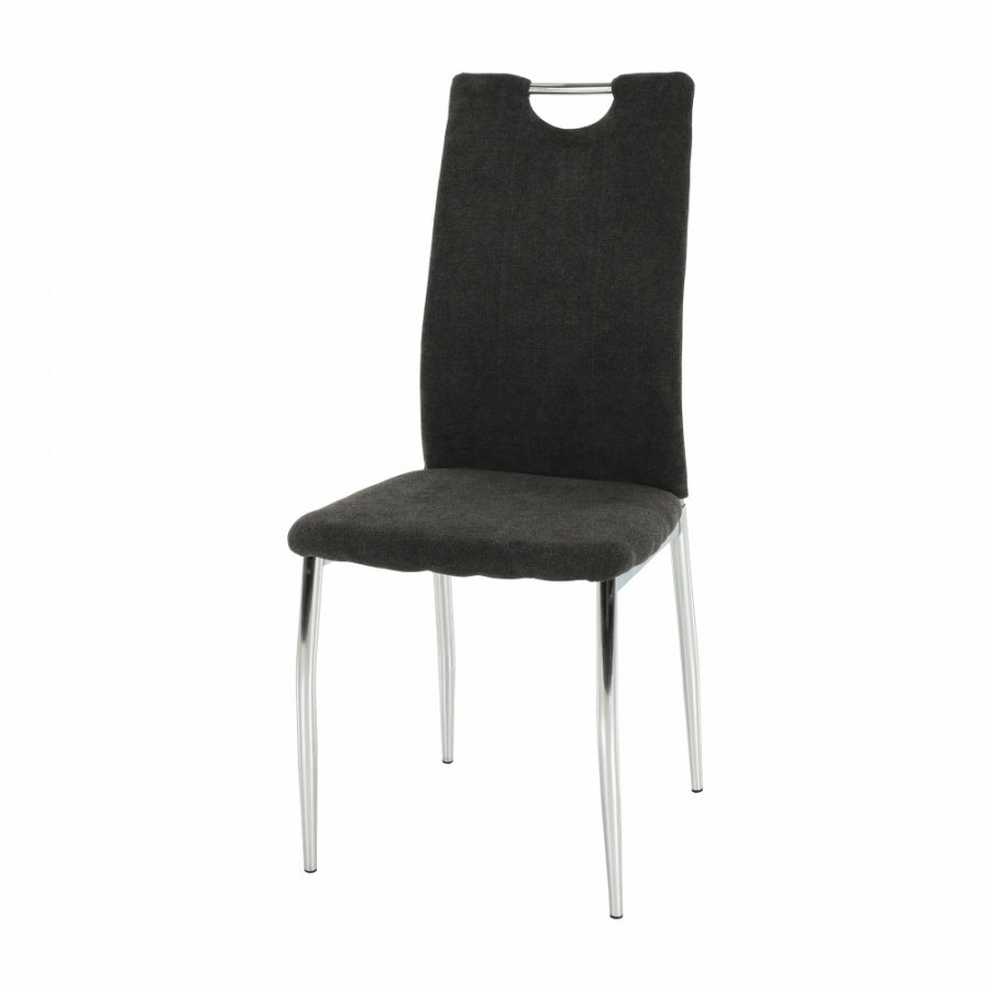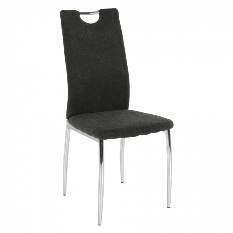 Jídelní židle OLIVA NEW v barevném provedení hnědošedé látky s chromovanými nohami.