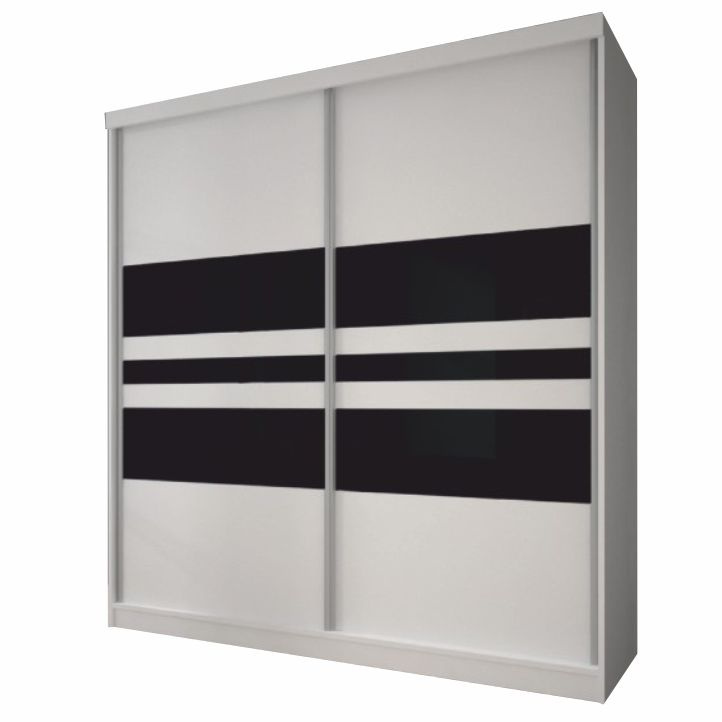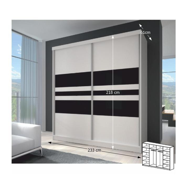 Skříň s posuvnými dveřmi, bílá / černé sklo, 233x218, MULTI 11