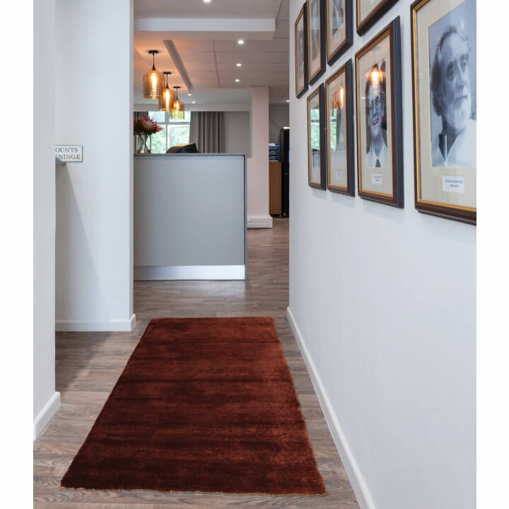 Koberec LUMA. Materiál: 100% polyester Barevné provedení: bordovohnedá Rozměry (ŠxD): 80x150 cm