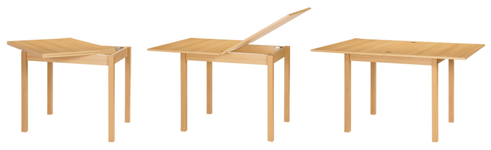 Malý jídelní stůl s jednoduchou konstrukcí. Základní rozměr: 90x68cm Po rozložení: 136 x90 cm