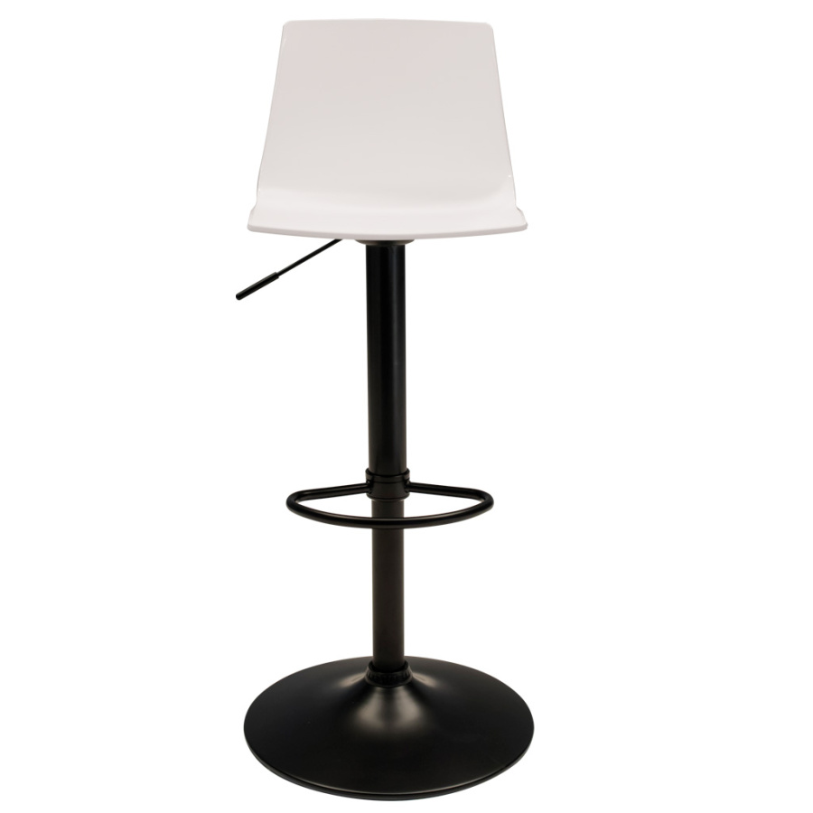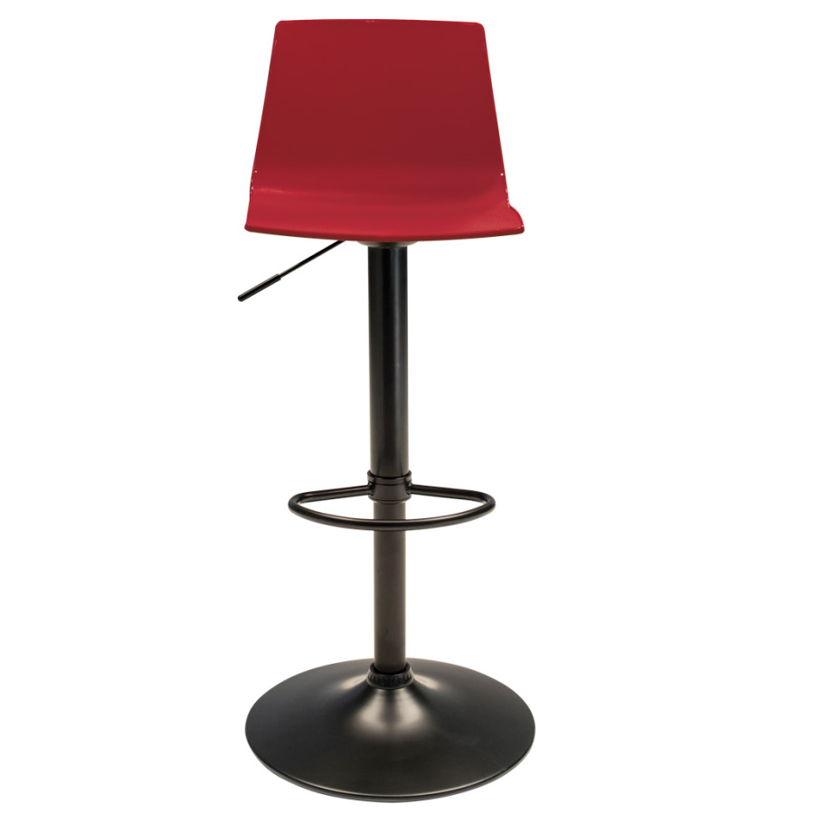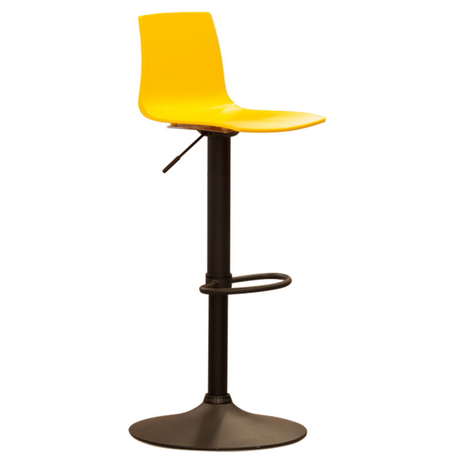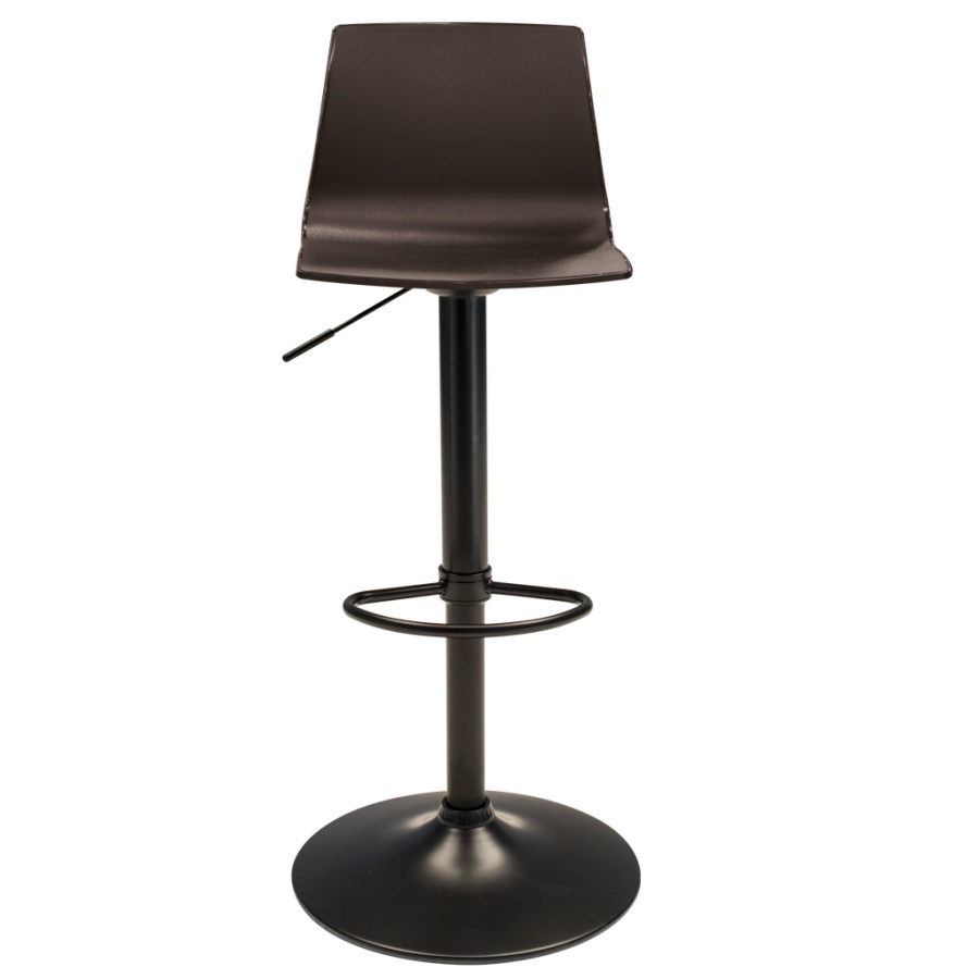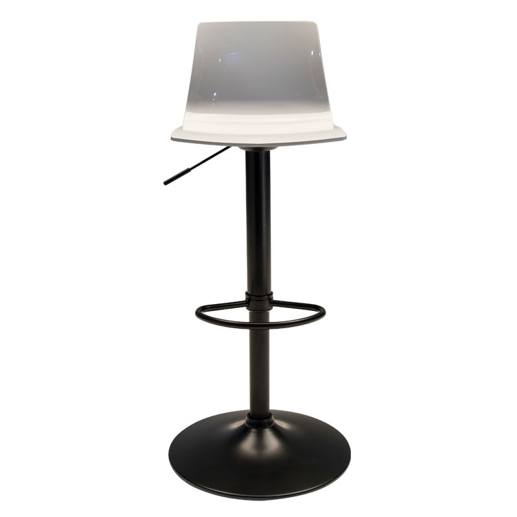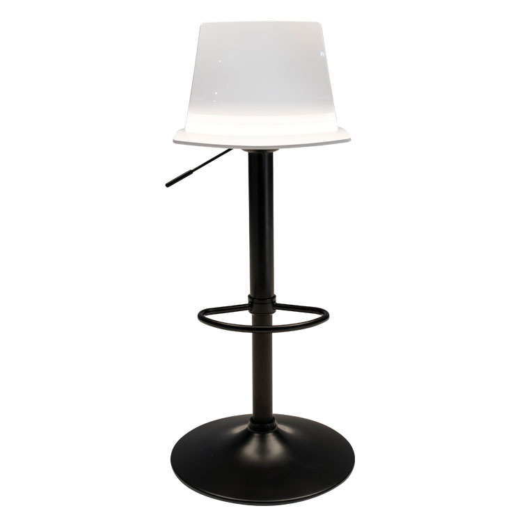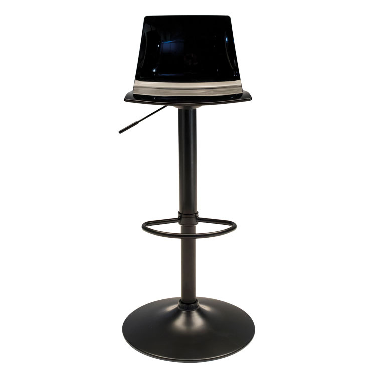 Barová židle na kovové stavitelné podnoži - černý mat. Výška sedu 56-79cm. Sedák plast polypropylen, nebo transparentní polykarbonát. Jen pro bytové použití a v interieru.