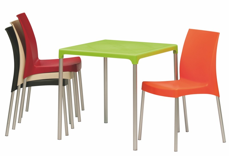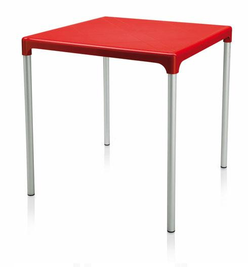 Plastový stůl s kovovou podnoží. Ideální pro venkovní použití - snadná údržba.