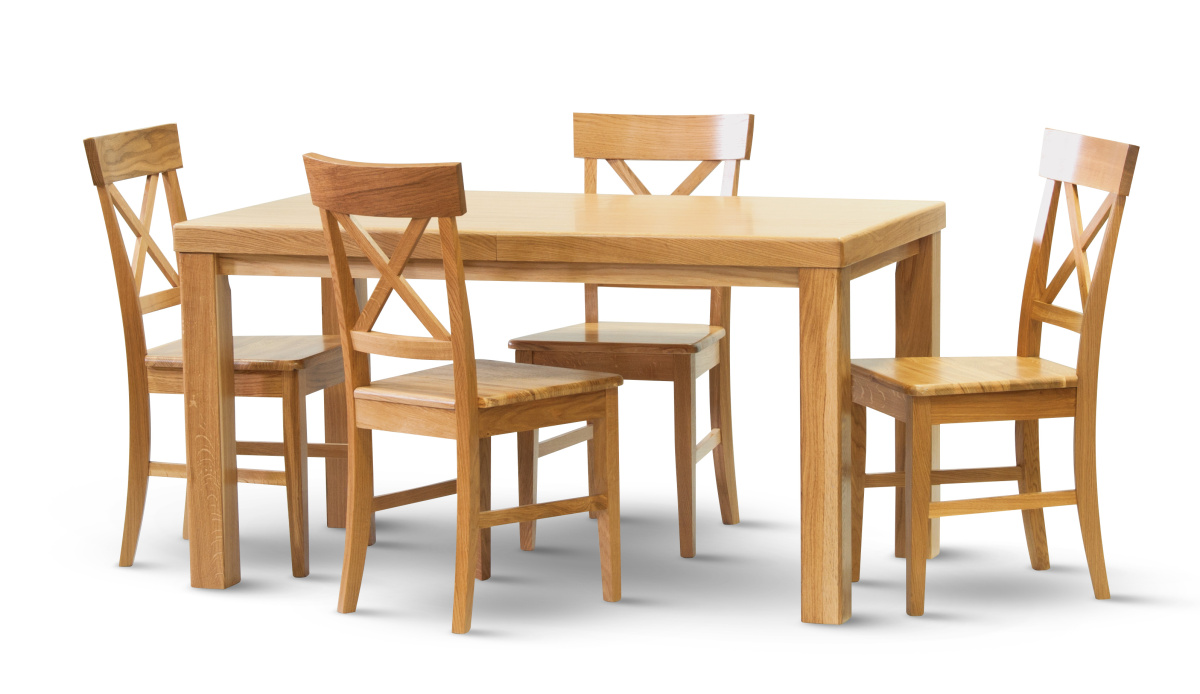 Novinka 2020 - jídelní stůl dub v kombinaci deska dýha a podnož masivní. Dodáváme v rozměrech od 120d180cm a pevné i rozkládací varianty.
