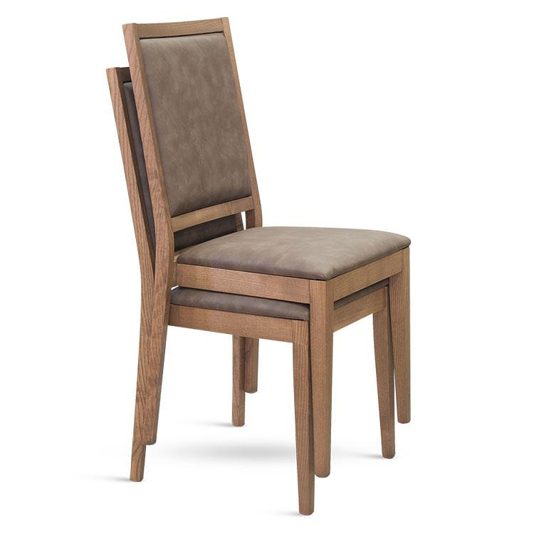 Mimořádná akční nabídka - odřeknutá zakázka. Stohovatelná židle, materiál je jasan, odstín dub halifax. Čalouněno prémiovou koženkou CRAZY, odstín marrone. Židle byly určeny pro luxusní resort v Itálii - čalouněno nehořlavou výplní, kostra plní normu CATAS. K dispozici omezené množství, jen do vyprodání položky.