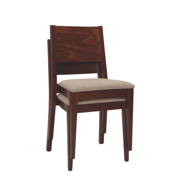 Stohovatelná židle - buková kostra a čalouněný sedák. Minimální objednávka je 30ks (restaurace, sály a pod). Možnost pevného (překližkového) sedáku. Cena položky se mění podle vybrané varianty. Pro výběr sedáku musíte zvolit odstín kostry.