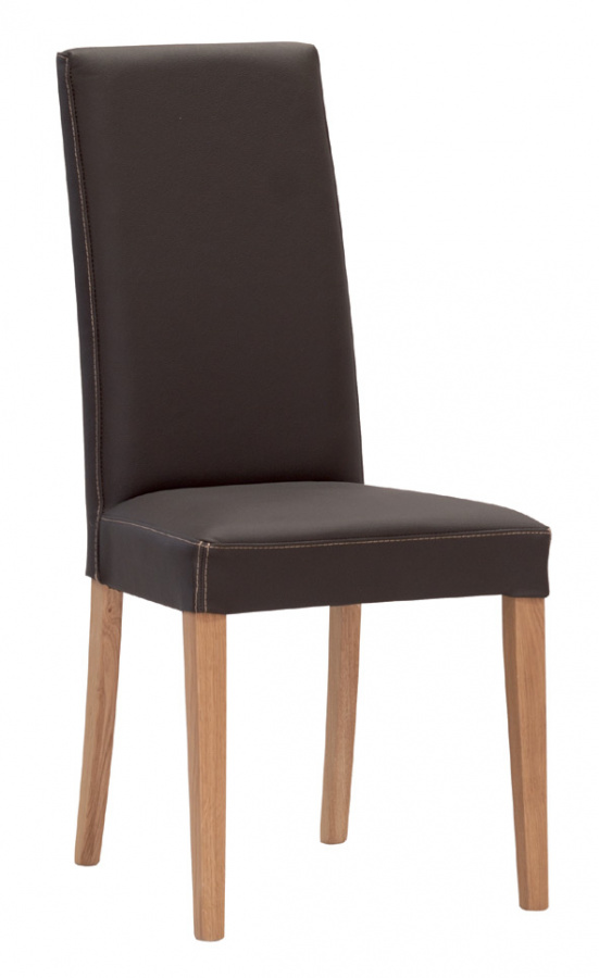 Pohodlná jídelní židle v luxusním provedení - podnož dub, čalouněno kůží s přiznaným obšitím.