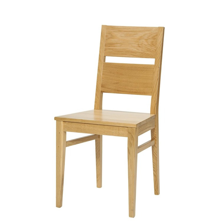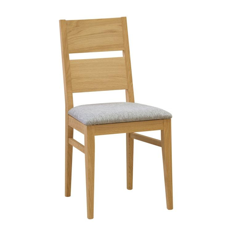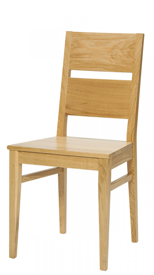 Jídelní židle z dubu (masiv). Sedák pevný, nebo čalouněný - výběr z 86 látek. Elegantní a stále moderní silueta. Cena položky se mění podle vybrané varianty. Pro výběr sedáku musíte zvolit odstín kostry.