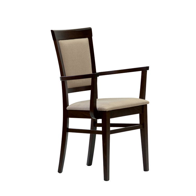 Klasická jídelní židle s područkou a čalouněným sedákem i opěrkou. Vyberte si látku na míru z naší široké nabídky zakázkových látek. Cena položky se mění podle vybrané varianty. Pro výběr sedáku musíte zvolit odstín kostry.