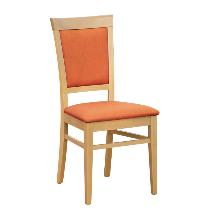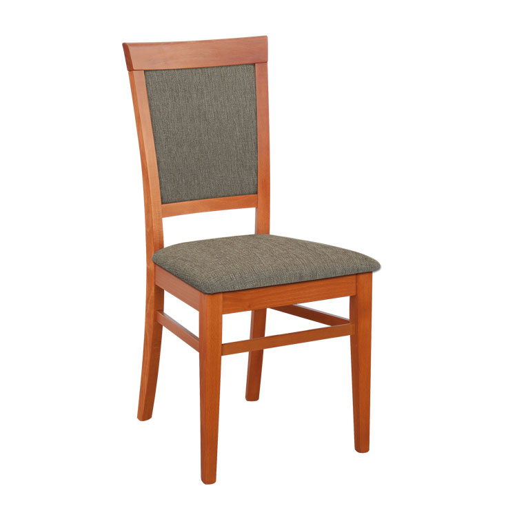 Klasická, velmi pohodlná jídelní židle s čalouněným sedákem i opěrkou. Standardní skladové provedení s látkami AMBER, v zakázkovém provedení dodáváme širokou paletu látek. Cena položky se mění podle vybrané varianty. Pro výběr sedáku musíte zvolit odstín kostry.