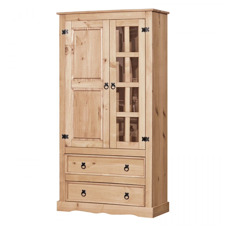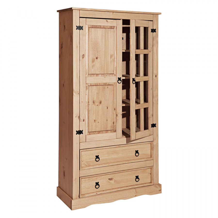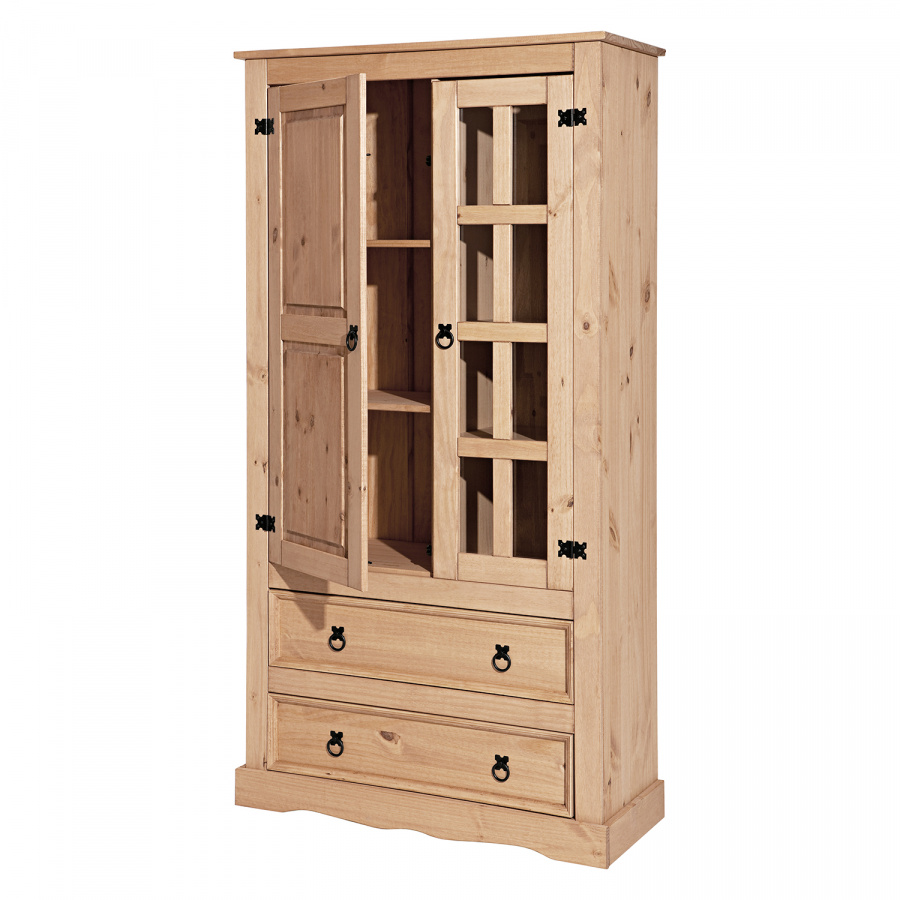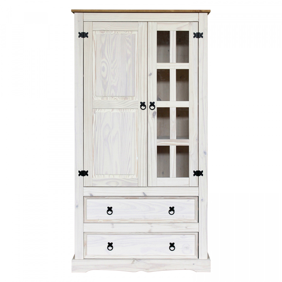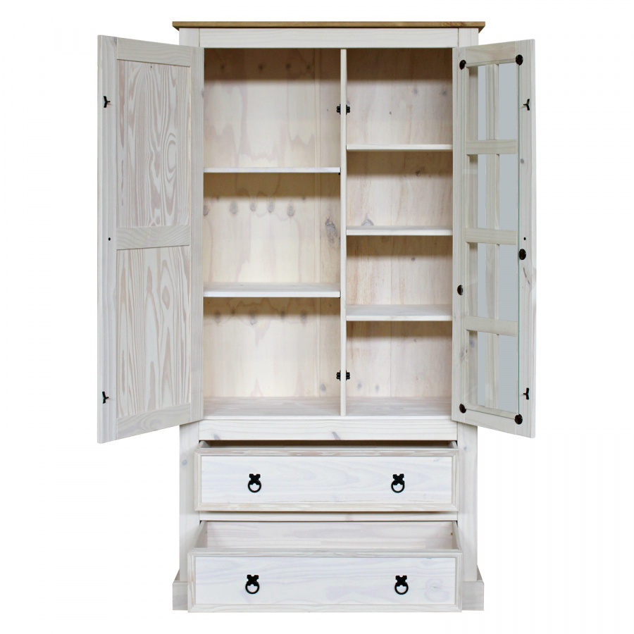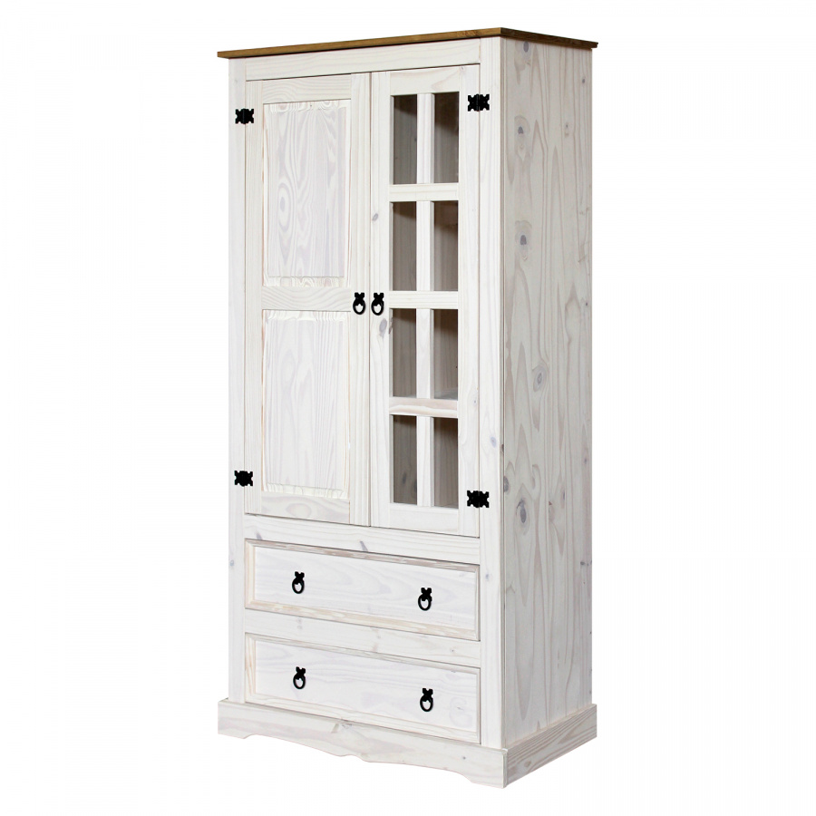 prosklená část, 3 police, 1 plná dvířka, 2 velké zásuvky