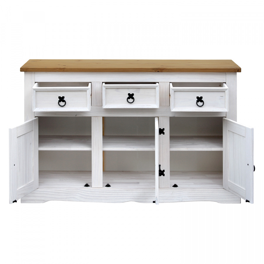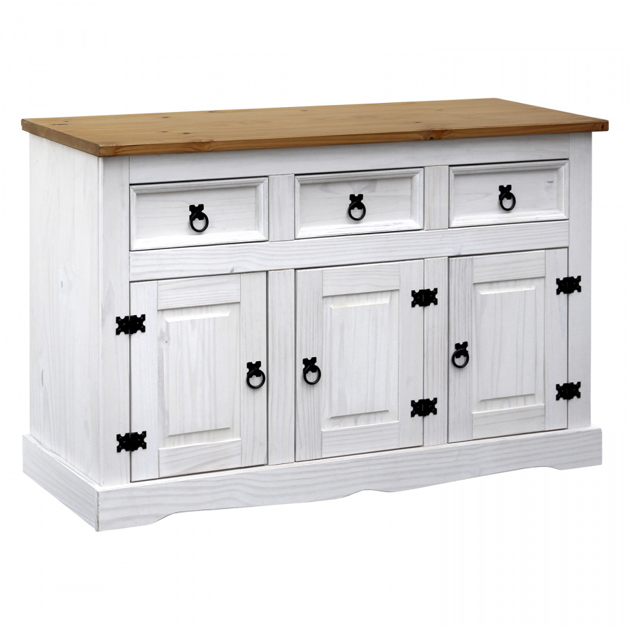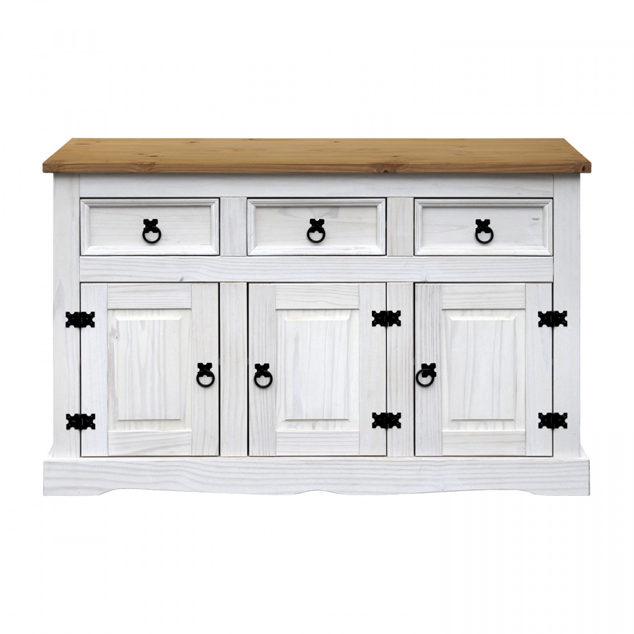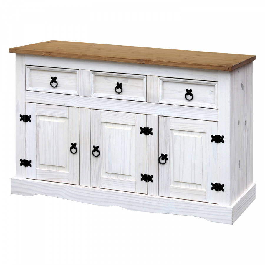 3 malé zásuvky, 3 dvířka, 1 police, kovové ozdobné úchytky