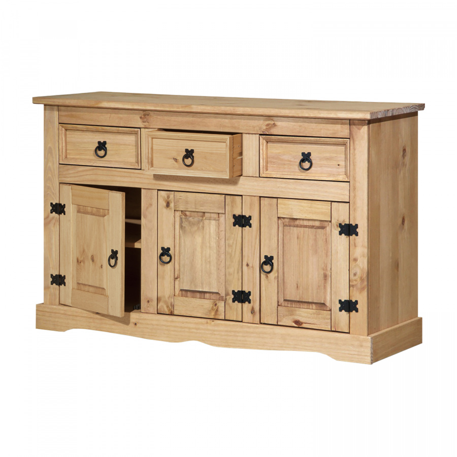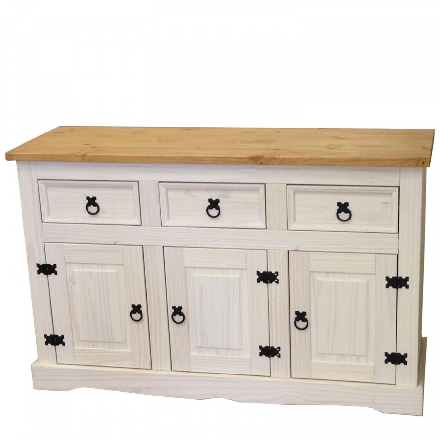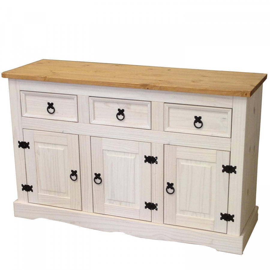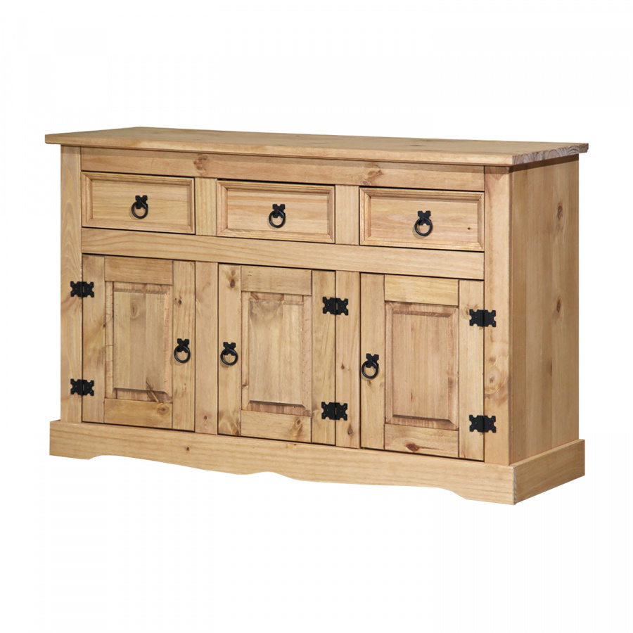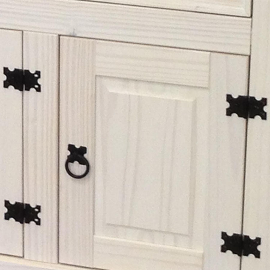 3 malé zásuvky, 3 dvířka, 1 police, kovové ozdobné úchytky