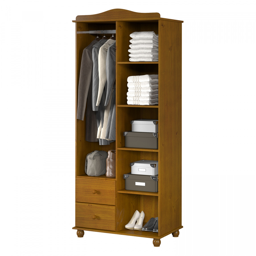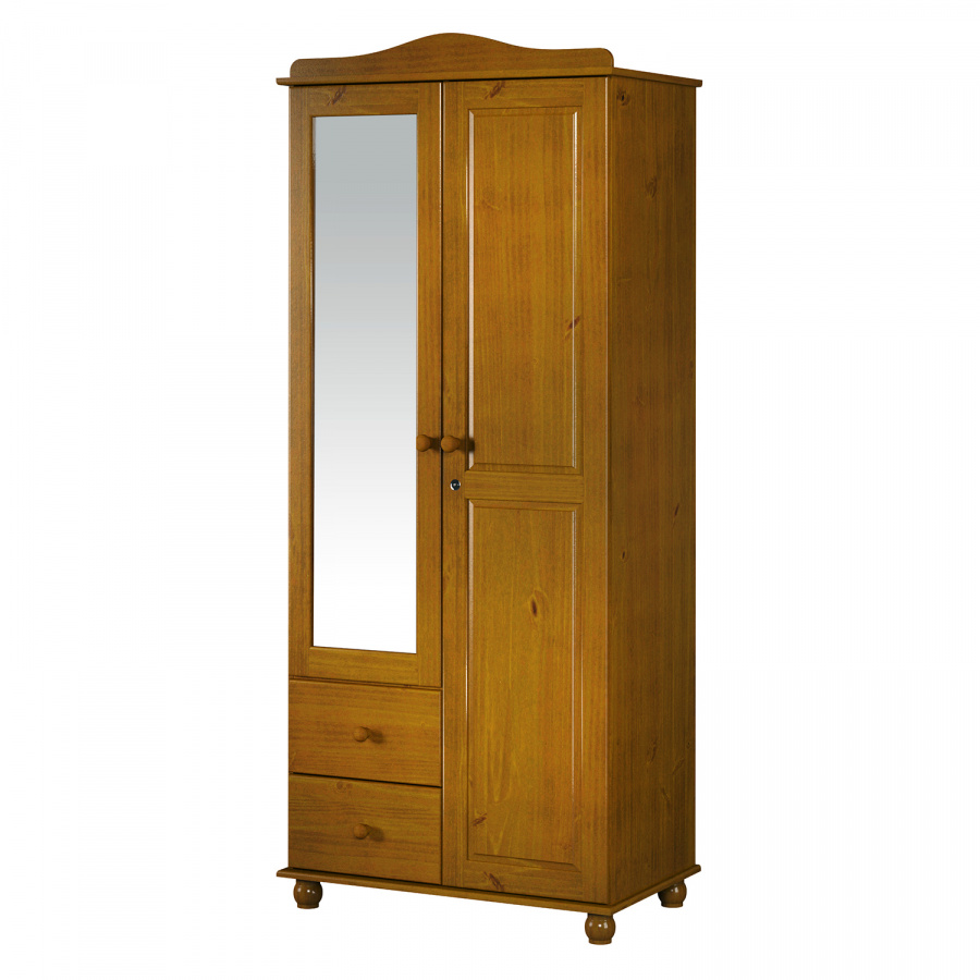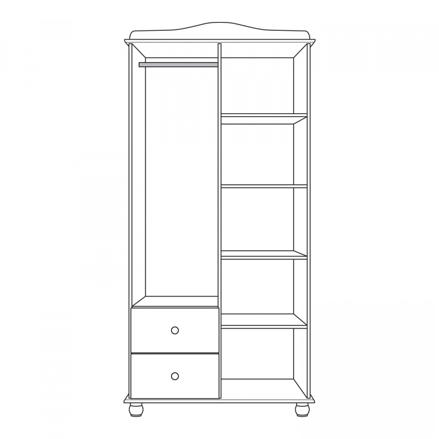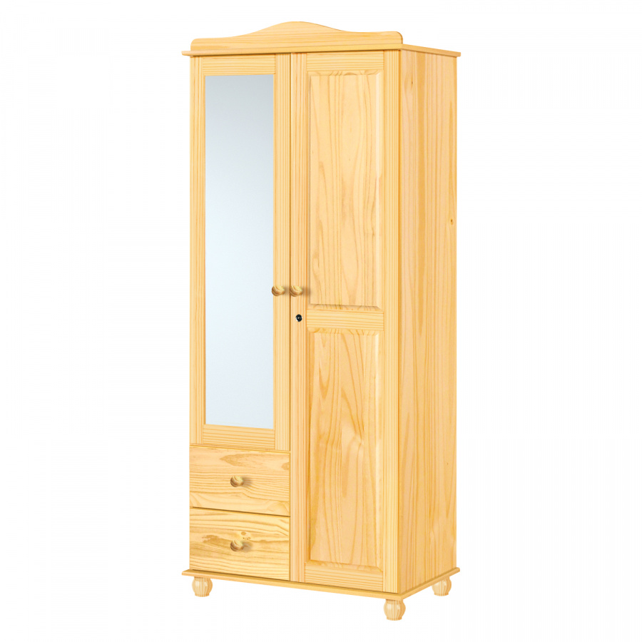 v levé části dveře se zrcadlem, kovová šatní tyč, 2 zásuvky s kovovými pojezdy