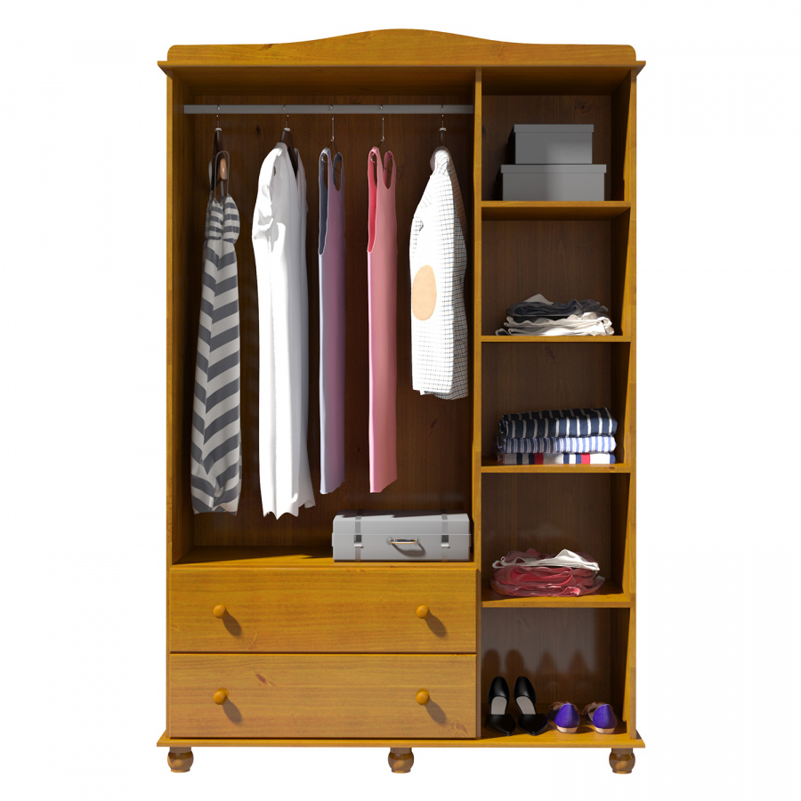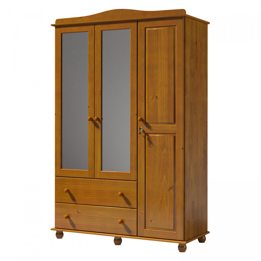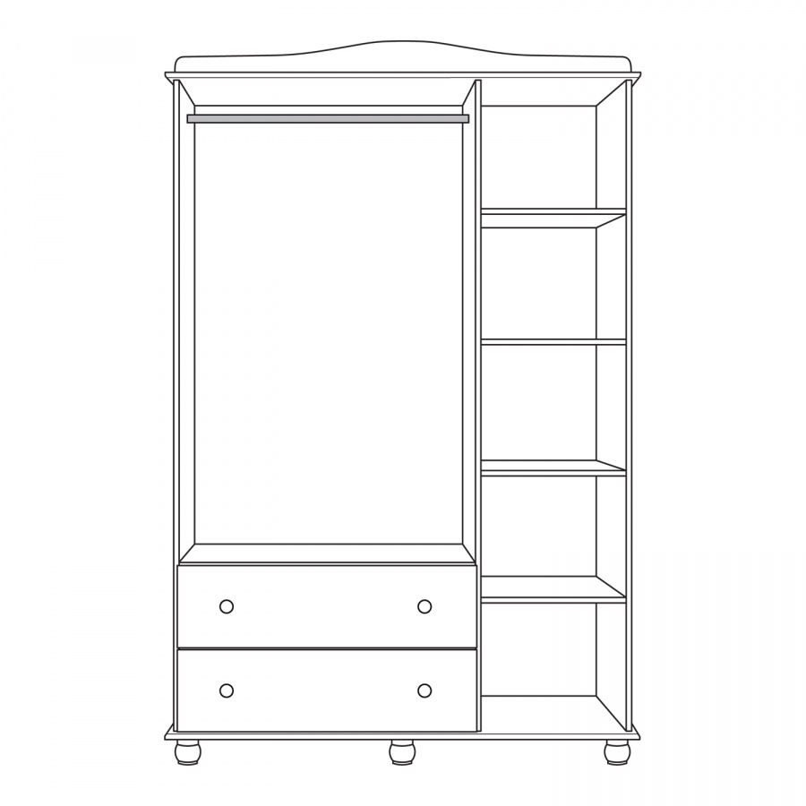 v levé části dveře se zrcadlem, kovová šatní tyč, 2 zásuvky s kovovými pojezdy