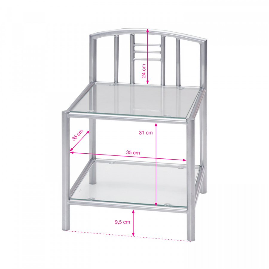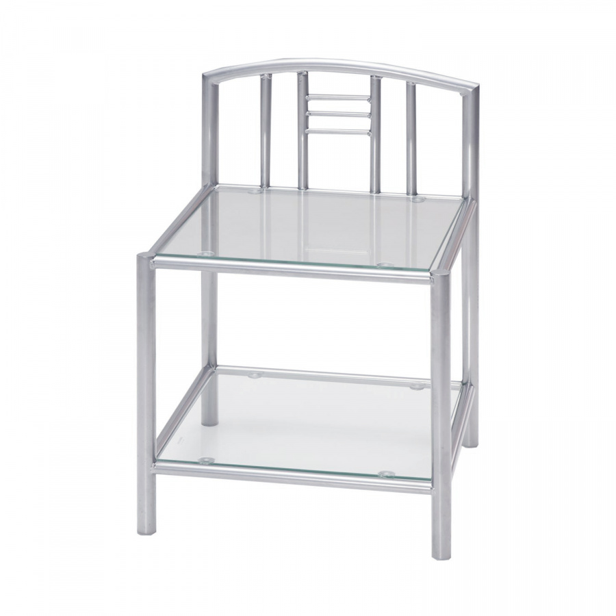 kovová konstrukce, barevné provedení stříbrná dvě skleněné police vhodný doplněk k postelím PARIS (3021, 3022 a 3023)