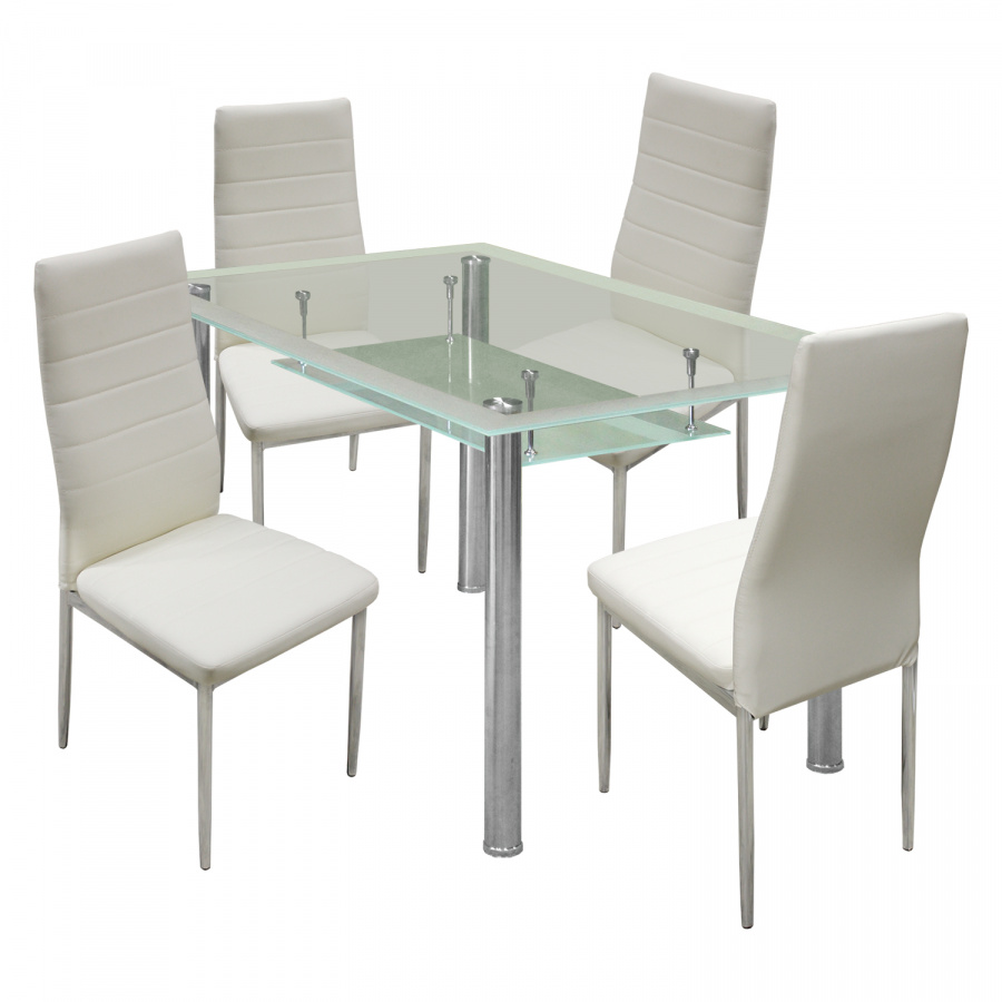stůl v kombinaci kov / tvrzené sklo, chromované nohy