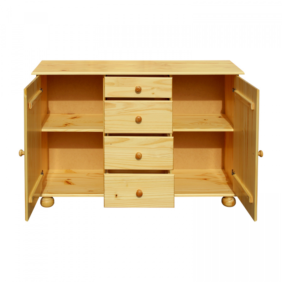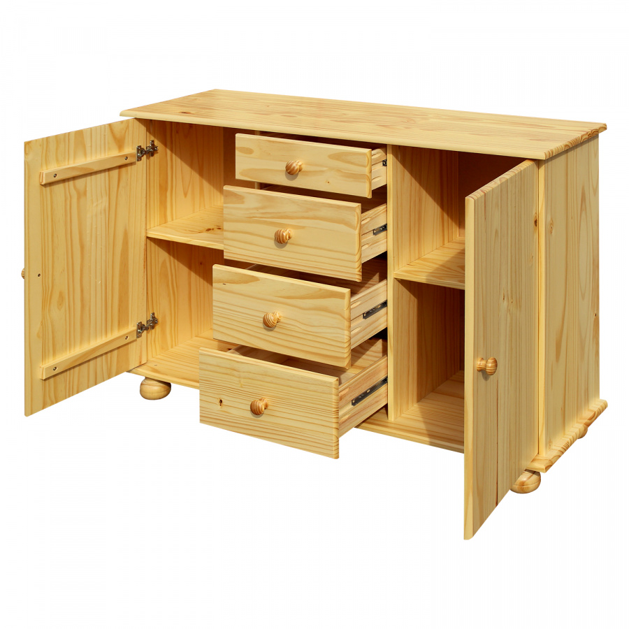 4 zásuvky s kovovými pojezdy, 2 skříňky s dvířky vybavené policí