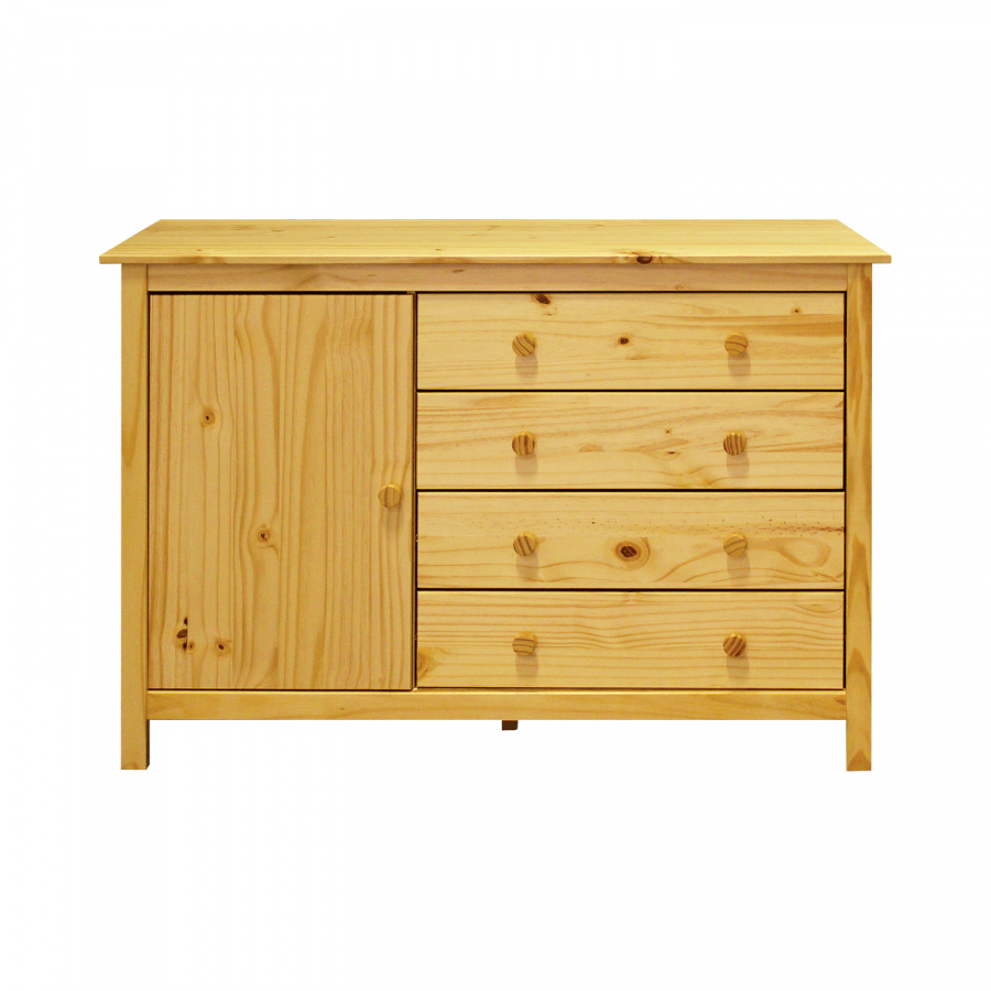 1 dvířka a 4 zásuvky s kovovými pojezdy