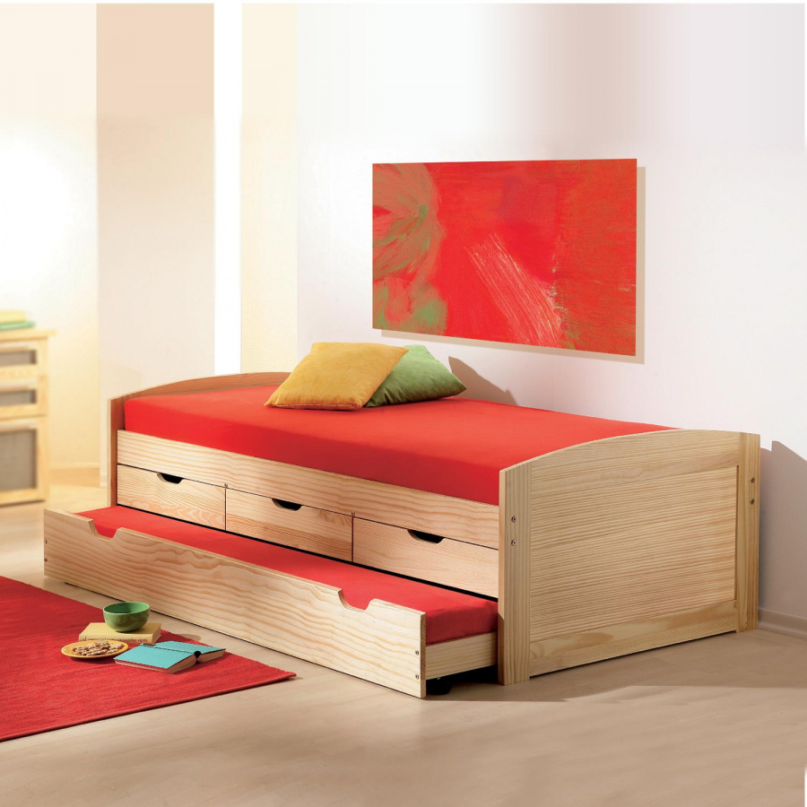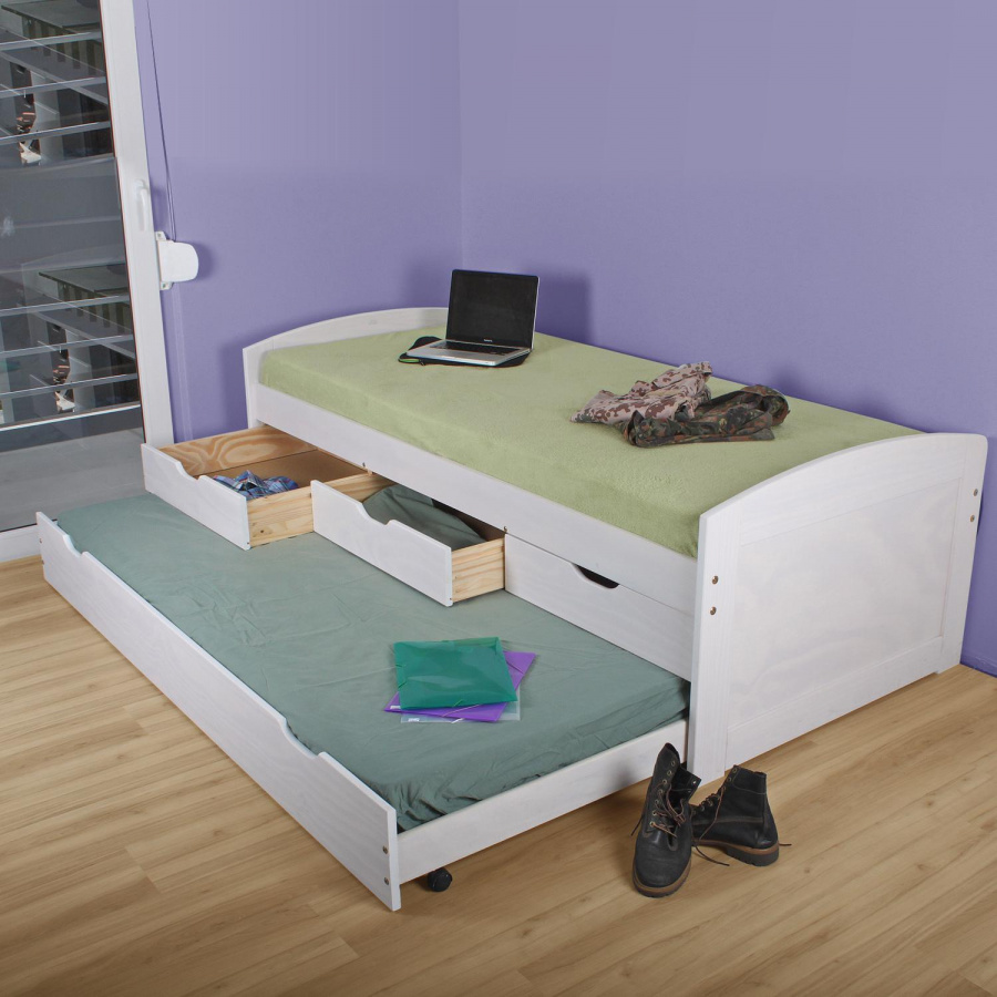 výsuv možno po doplnění o rošt užívat také jako přistýlku (rošt nutno doobjednat zvlášť, doporučená výška matrace do 10 cm)