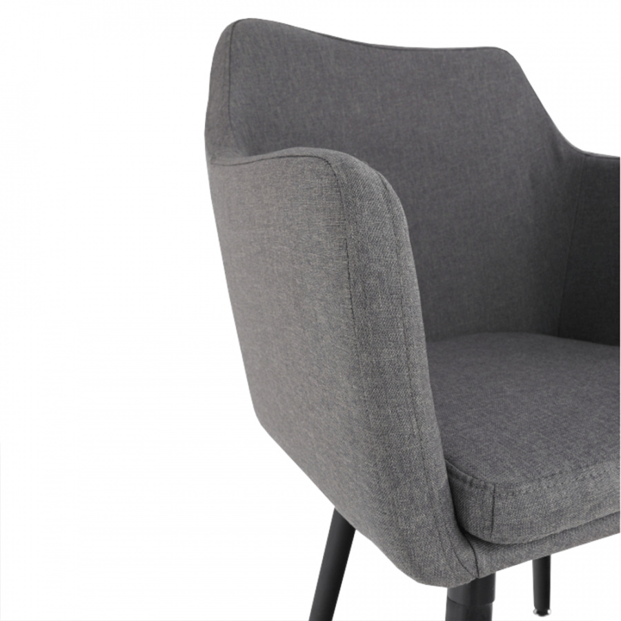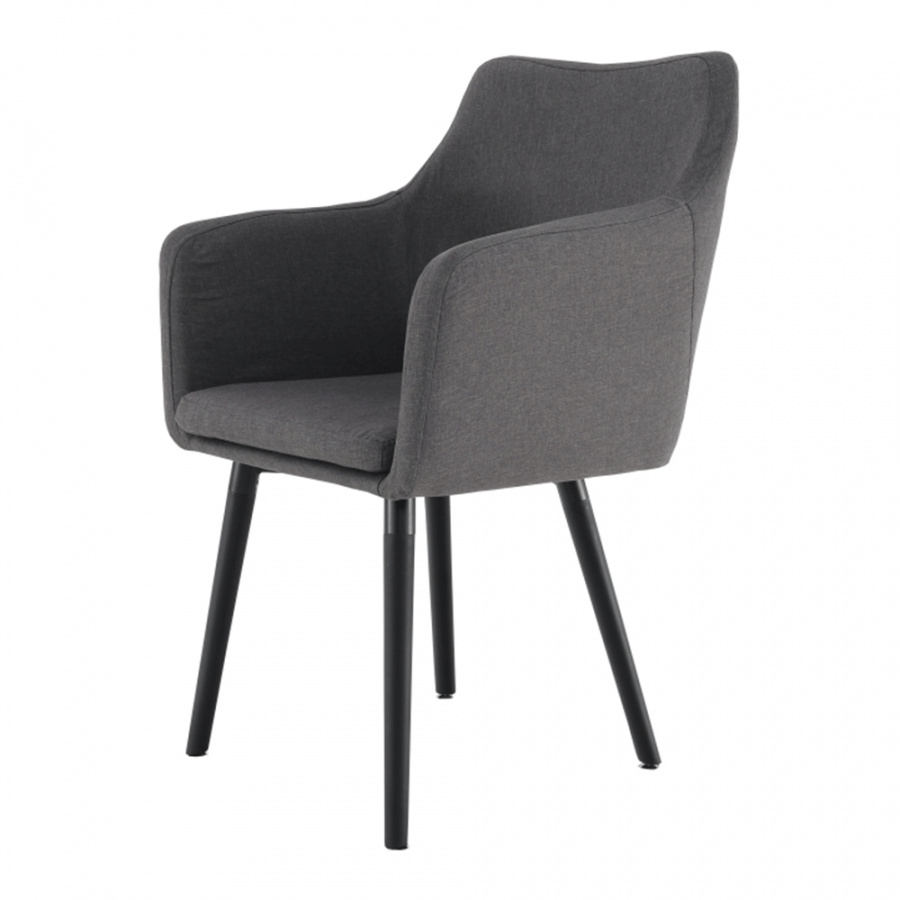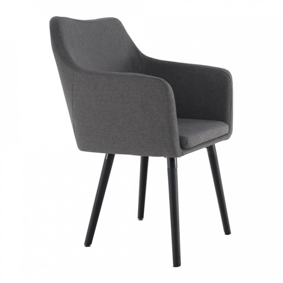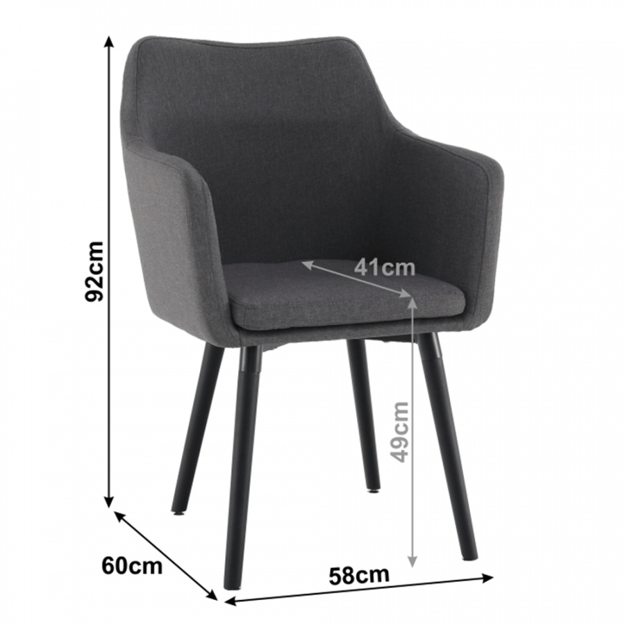 Jídelní křeslo Dabir Materiál: látka / buk Barevné provedení: šedohněda / černá Rozměry (ŠxHxV): 58x60x92 cm Výška sedu: 49 cm Hloubka sedu: 41 cm Nohy zakončené ohebnými kluzáky na vyrovnání nerovnosti povrchu Dodáván v demontu
