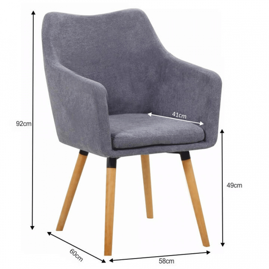 Jídelní křeslo Dabir Materiál: látka / buk Barevné provedení: šedá Rozměry (ŠxHxV): 58x60x92 cm Výška sedu: 49 cm Hloubka sedu: 41 cm Nohy zakončené ohebnými kluzáky na vyrovnání nerovnosti povrchu Dodáván v demontu