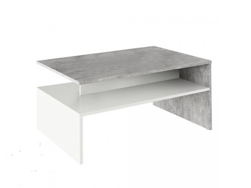 Moderní konferenční stolek v provedení beton/bílá s jednou policí.