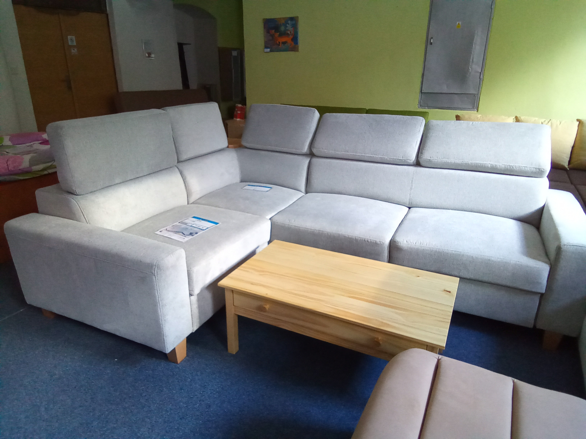 Moderní rohová rozkládací sedací souprava s úložným prostorem. Sedačka je vhodná také pro vyšší lidi, jelikož celková výška se záhlavníkami dosahuje výšky až 109 cm. V rohovém dílu se nachází menší polička, která vám poslouží jako odkládací prostor. Pohovka má velmi kvalitní odpružení, pevnou konstrukci, krásný design a polohovatelné opěry.