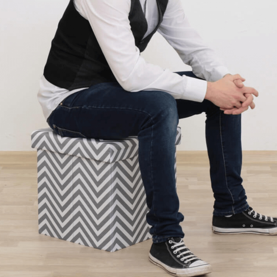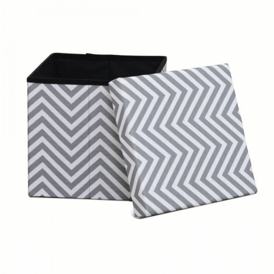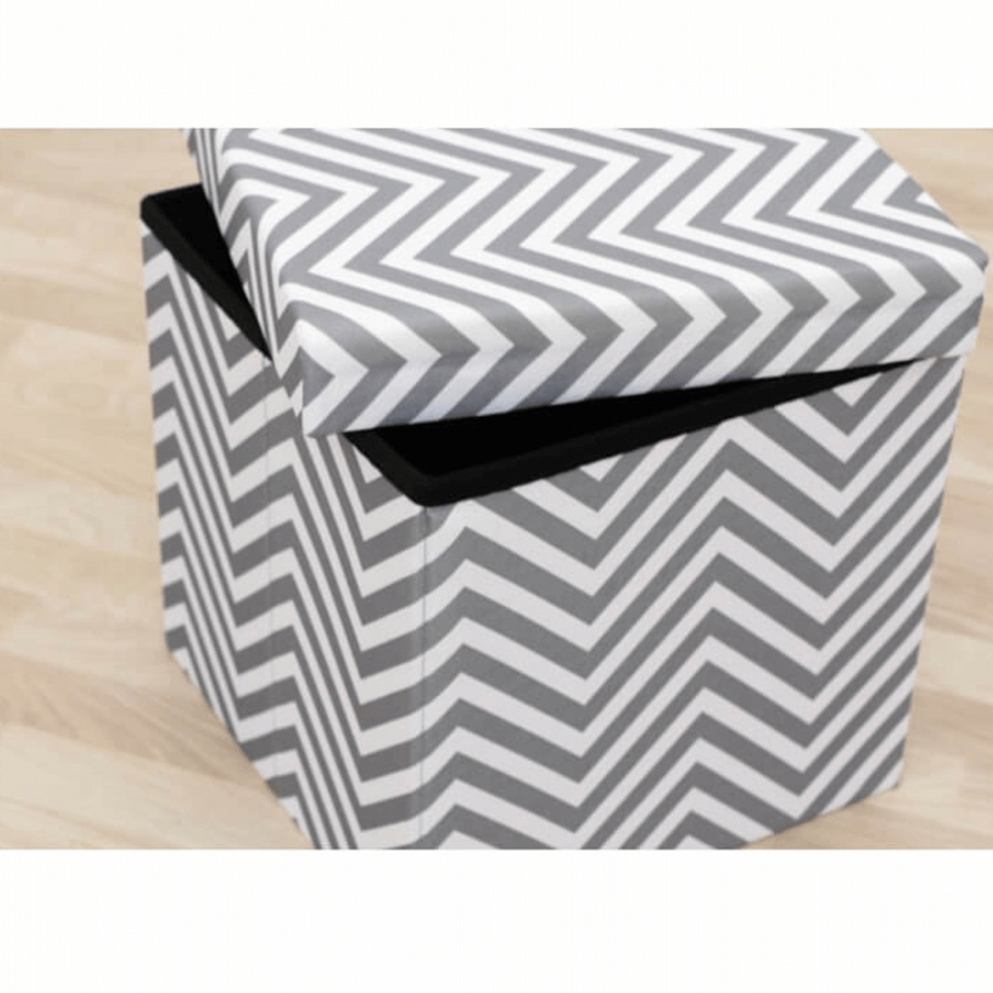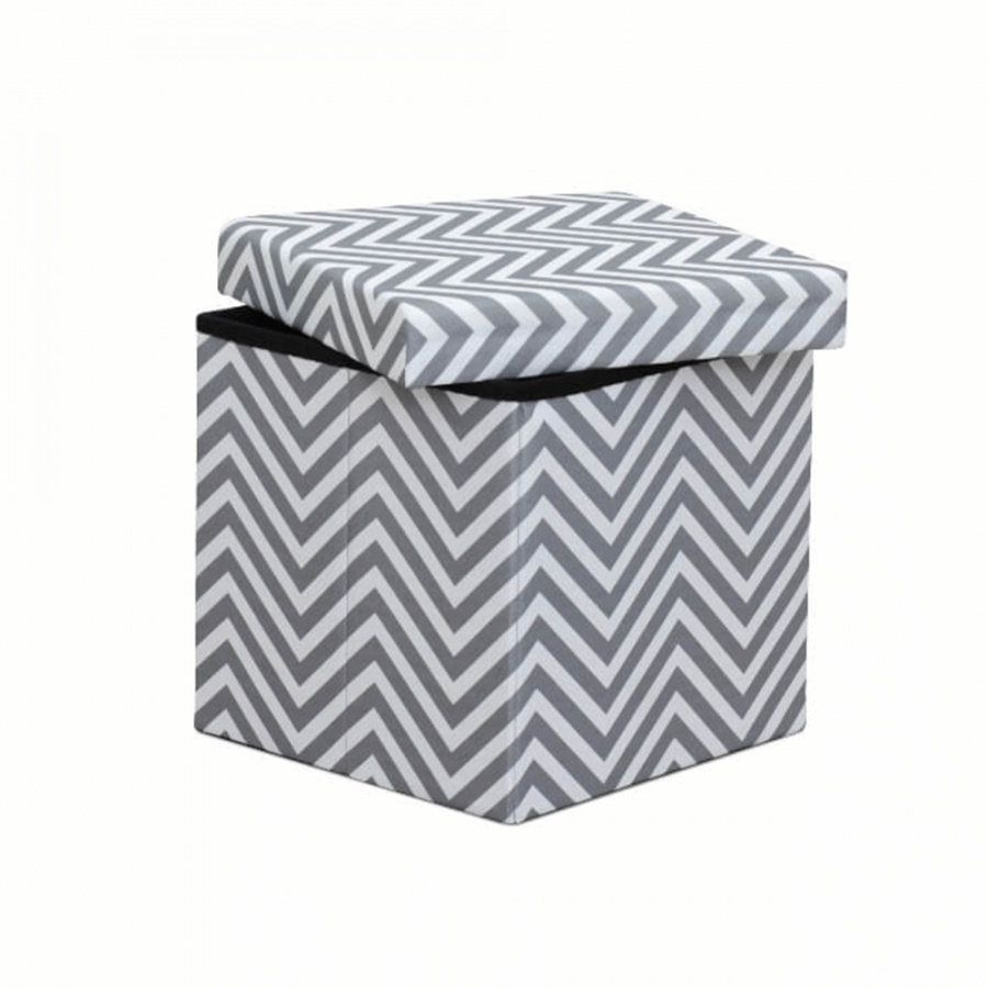Taburet s prošitím a úložným prostorem GAZMEND Materiál: látka Barva: šedá / bílá Rozměry (ŠxHxV): 37,5x37,5x38 cm Nosnost: 100 kg Dodávané v demontu.