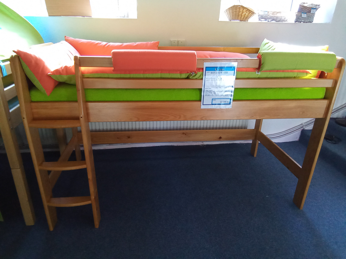 V ceně zvýšeného jednolůžka je žebřík a rošt.