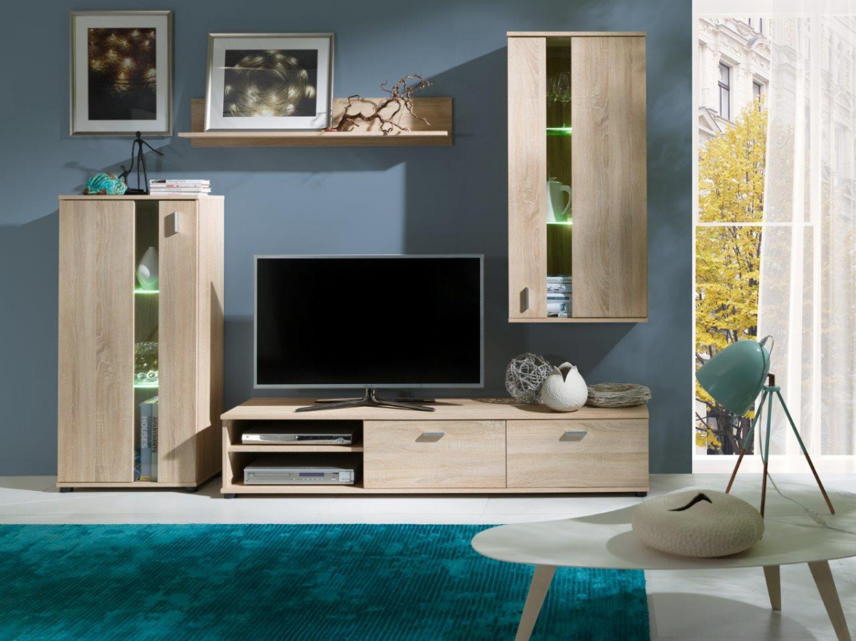 Obývací stěna Mironet vyniká moderním a elegantním vzhledem. Je vyrobena z kvalitních materiálů. Sektor se skládá ze 4 prvků jako závěsné vitríny, police, televizního stolku, vitríny. Bytová stěna se dodává bez led osvětlení. Osvětlení je možné doobjednat.