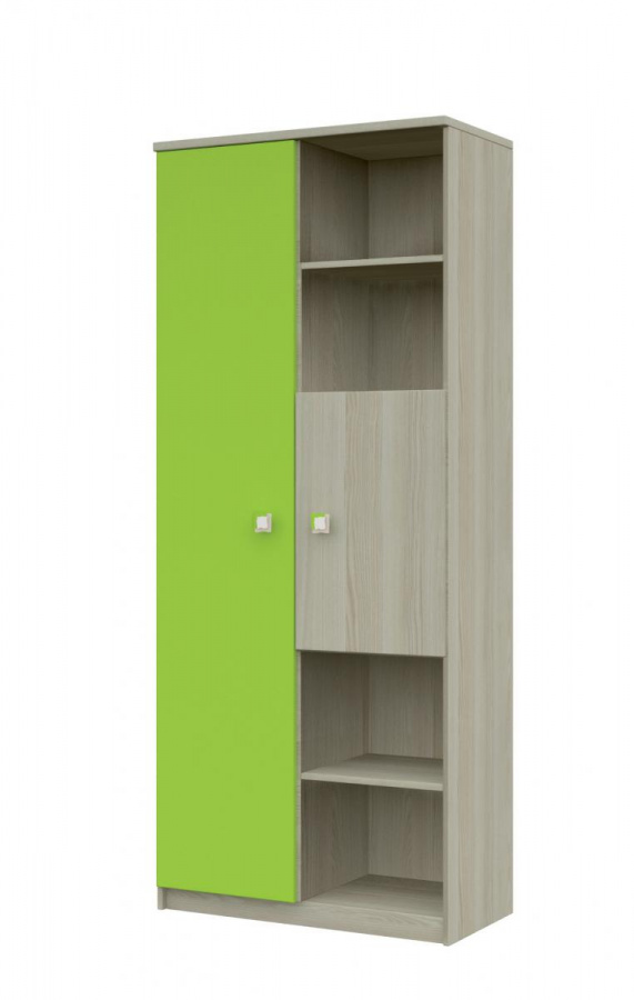 Regál s dvířky Merkur je velmi praktický a poskytuje dostatek úložného prostoru. Má variabilní použití a může sloužit např. k uložení oblečení, nebo školních pomůcek a učebnic, ale také jako skříňka na hračky. Je vhodný do dětských i studentských pokojů. Regál je vyrobený z kvalitní laminované dřevotřísky tl.16 mm, odolné vůči poškrábání, vlhkosti a vysokým teplotám. Regál je dodávaný v demontu. Součástí balení je montážní plánek včetně všech potřebných spojovacích materiálů.
