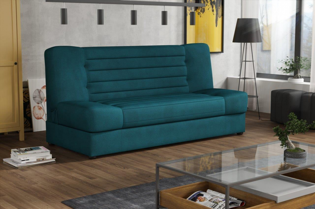 Pohovka Missy v sobě spojuje eleganci, funkčnost a příznivou cenu. Je vyrobená v jednoduchém nadčasovém designu, který se hodí do každého inferiéru. Umístit ji můžete nejen do obývacího pokoje, ale také např. do pracovny, nebo hostinského pokoje. Pohovka je rozkládací. Jednoduchým rozložením získáte lůžko k občasnému přespání Vaší návštěvy. Samozřejmostí je i praktický úložný prostor, který můžete využít třeba na lůžkoviny. Pohovku nabízíme v několika barevných provedeních. Vyobrazené doplňky a dekorace nejsou v ceně. Zobrazení barev na fotografii se může od skutečnosti lišit.