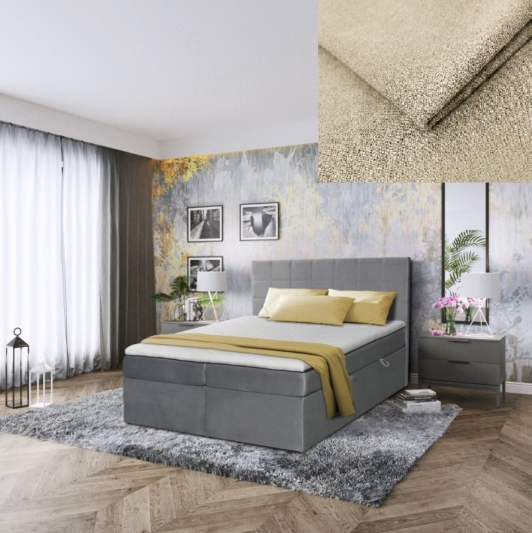 Postel Chantal je velmi pohodlná postel typu boxspring s vysokým prošívaným čelem - 120 cm a nadstandartní výškou plochy pro spaní - 60 cm. S postelí Chantal se Vaše ložnice stane oázou odpočinku a ráno budete vstávat příjemně odpočinutí. Postel se skládá z několika vrstev. První vrstva je rám postele s úložným prostorem, který se otevírá z boku. Jako další vrstva je na pevné desce umístěna dělená pružinová matrace o výšce 18 cm a jako poslední vrstva je na matracích topper z paměťové pěny o výšce 4 cm. Postel nabízíme v několika barevných provedeních. Úvodní fotografie je ilustrační. Postel bude dodána v potahové látce jejíž vzorek je vyobrazený v doplňkových fotografiích. Vyobrazené doplňky a dekorace nejsou v ceně postele. Zobrazení barev na fotograii se může od skutečnosti lišit.