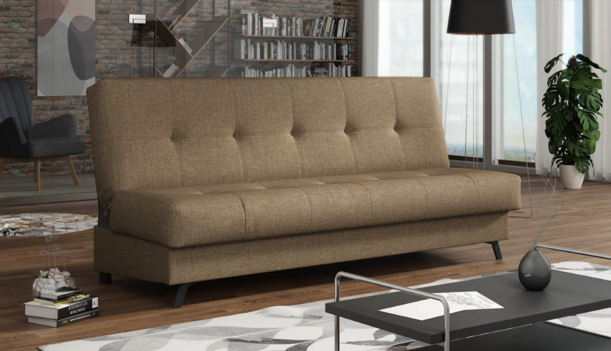 Pohovka Dream XIII je příjemným spojením elegance, funkčnosti a atraktivní ceny. Skvěle podtrhne moderní design obývacího pokoje, ale je také vhodná např. do studentského pokoje, pracovny, nebo hostinského pokoje. Pohovka je rozkládací. Jednoduchým rozložením získáte lůžko k občasnému přespání Vaší návštěvy. Samozřejmostí je i praktický úložný prostor, který můžete využít třeba na lůžkoviny. Pohovku nabízíme v několika barevných provedeních. Vyobrazené doplňky a dekorace nejsou v ceně. Zobrazení barev na fotograii se může od skutečnosti lišit.