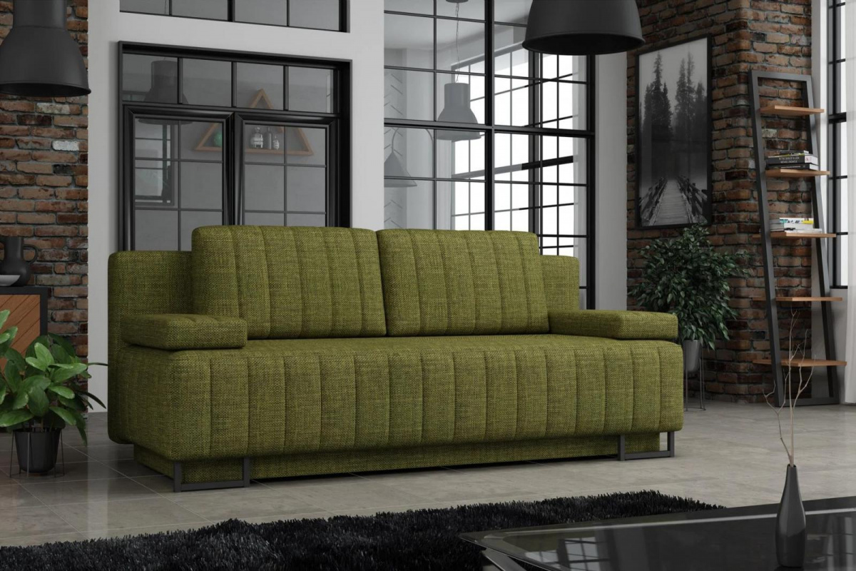 Gina je nadčasová pohovka s nádechem velmi oblíbeného retro designu. Výborně doplní jakýkoliv interiér, kde je pohodlí prioritou. Pohodlí při sezení zajišťují pružiny typu bonell v kombinaci s kvalitní PUR pěnou. Praktickou stránkou pohovky je možnost rozložení. Jednoduše, pomocí automatu, ji rozložíte na dostatčně velké lůžko k příležitostnému přespání návštěvy. Pohovka má také nezbytný úložný prostor, který využijete např.na lůžkoviny. Pohovka je potažena kvalitní látkou a nabízíme ji v několika trendy odstínech. Vlivem nastavení monitorů, nebo displejů telefonů, se zobrazení barev na fotograii může od skutečnosti lišit. Vyobrazené dopňky a dekorace nejsou v ceně.