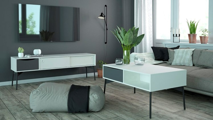 Konferenční stolek Fino v industriálním stylu dokonale zapadá do současných trendů v oblasti interiérového designu. Je vzdušný a lehký. Navíc nabízí kromě odkládacího prostoru i zásuvku a otevřenou poličku na drobné doplňky. Konferenční stolek Fino můžete kombinovat s dalšími prvky z této kolekce, které také najdete v naší nabídce. Stolek je dodávaný v demontu. Součástí je montážní návod včetně všech potřebných spojovacích prvků. Vyobrazené doplňky a dekorace nejsou v ceně.