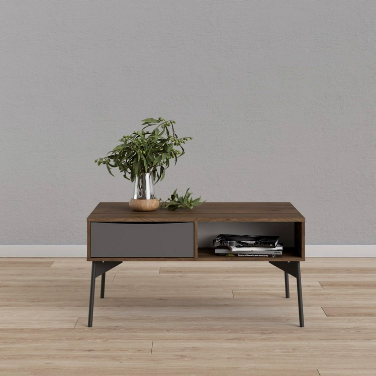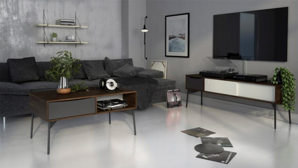 Konferenční stolek Fino v industriálním stylu dokonale zapadá do současných trendů v oblasti interiérového designu. Je vzdušný a lehký. Navíc nabízí kromě odkládacího prostoru i zásuvku a otevřenou poličku na drobné doplňky. Konferenční stolek Fino můžete kombinovat s dalšími prvky z této kolekce, které také najdete v naší nabídce. Stolek je dodávaný v demontu. Součástí je montážní návod včetně všech potřebných spojovacích prvků. Vyobrazené doplňky a dekorace nejsou v ceně.