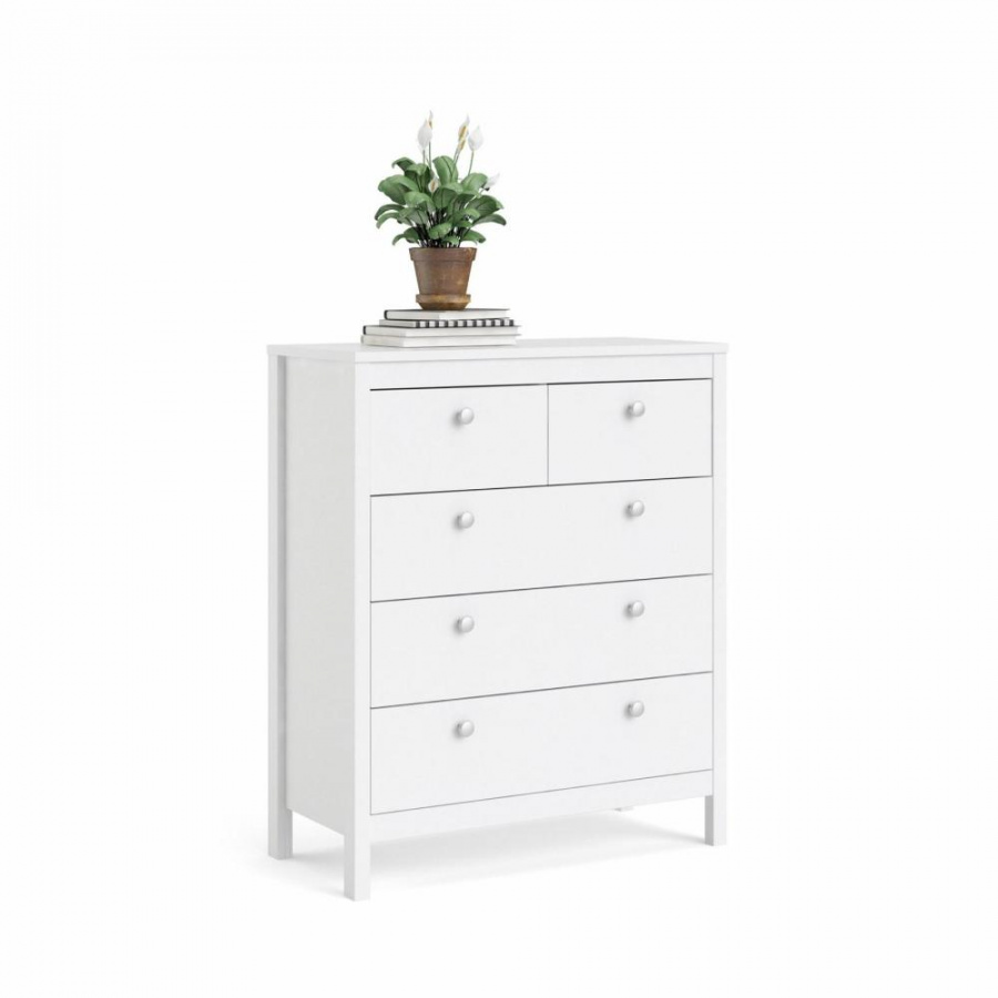 Komoda Real skvěle zapadne do moderního i stylového interiéru. Stačí změnit drobný detail, kterým jsou v tomto případě úchytky a z jemného stylu provence, rázem budete mít moderní kus, který skvěle zapadne např. do industriálního stylu. Oba typy úchytek, které jsou vyobrazené na fotografii, jsou součástí balení. Komoda je vyrobená z lamina, které je odolné a snadné na údržbu. Vlivem nastavení monitorů, nebo displejů telefonů, se zobrazení barev na fotograii může od skutečnosti lišit. Vyobrazené dopňky a dekorace nejsou v ceně. Nábytek je dodávaný z Dánska, proto doporučujeme ověřit dostupnost zboží.