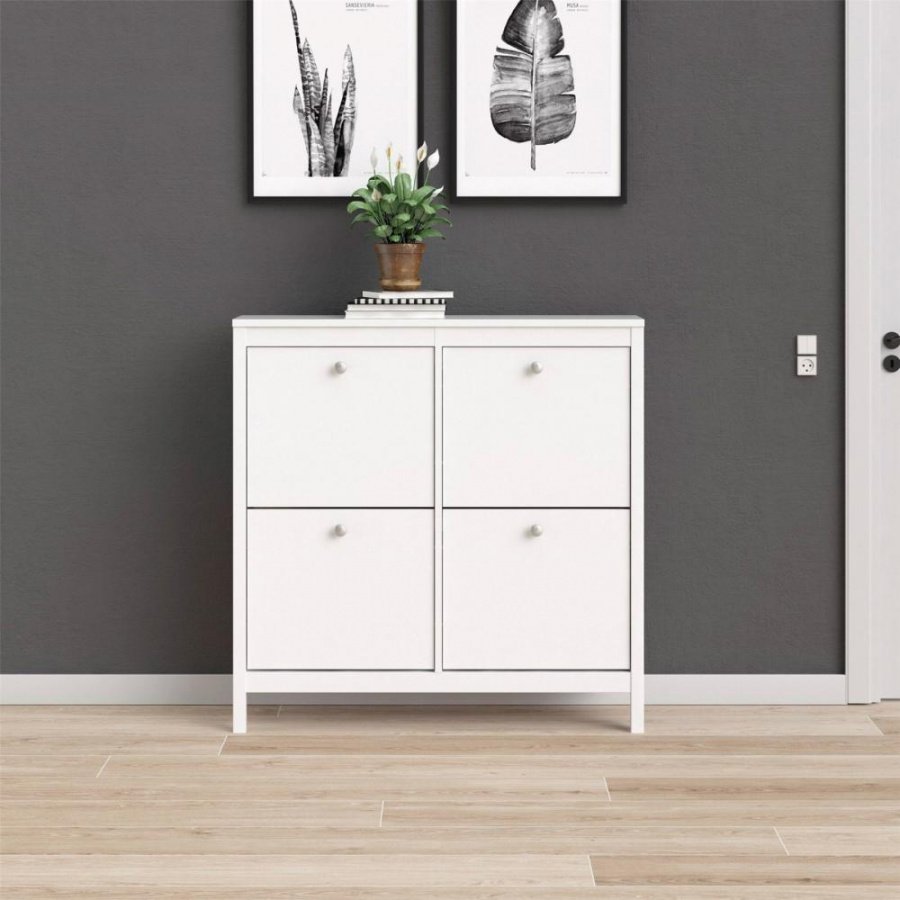 Botník Real skvěle zapadne do moderního i stylového interiéru. Stačí změnit drobný detail, kterým jsou v tomto případě úchytky a z jemného stylu provence, rázem budete mít moderní kus, který skvěle zapadne např. do industriálního stylu. Oba typy úchytek, které jsou vyobrazené na fotografii, jsou součástí balení. Botník je vyrobený z lamina, které je odolné a snadné na údržbu. Dvířka botníku jsou výklopná a boty do něj můžete ukládat ve dvou řadách, takže pojme až 16 párů bot. Vlivem nastavení monitorů, nebo displejů telefonů, se zobrazení barev na fotograii může od skutečnosti lišit. Vyobrazené dopňky a dekorace nejsou v ceně. Nábytek je dodávaný z Dánska, proto doporučujeme ověřit dostupnost zboží.
