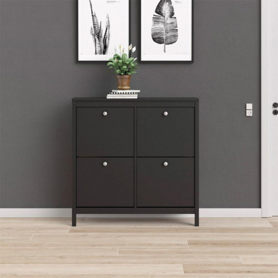 Botník Real skvěle zapadne do moderního i stylového interiéru. Stačí změnit drobný detail, kterým jsou v tomto případě úchytky a z jemného stylu provence, rázem budete mít moderní kus, který skvěle zapadne např. do industriálního stylu. Oba typy úchytek, které jsou vyobrazené na fotografii, jsou součástí balení. Botník je vyrobený z lamina, které je odolné a snadné na údržbu. Dvířka botníku jsou výklopná a boty do něj můžete ukládat ve dvou řadách, takže pojme až 16 párů bot. Vlivem nastavení monitorů, nebo displejů telefonů, se zobrazení barev na fotograii může od skutečnosti lišit. Vyobrazené dopňky a dekorace nejsou v ceně. Nábytek je dodávaný z Dánska, proto doporučujeme ověřit dostupnost zboží.