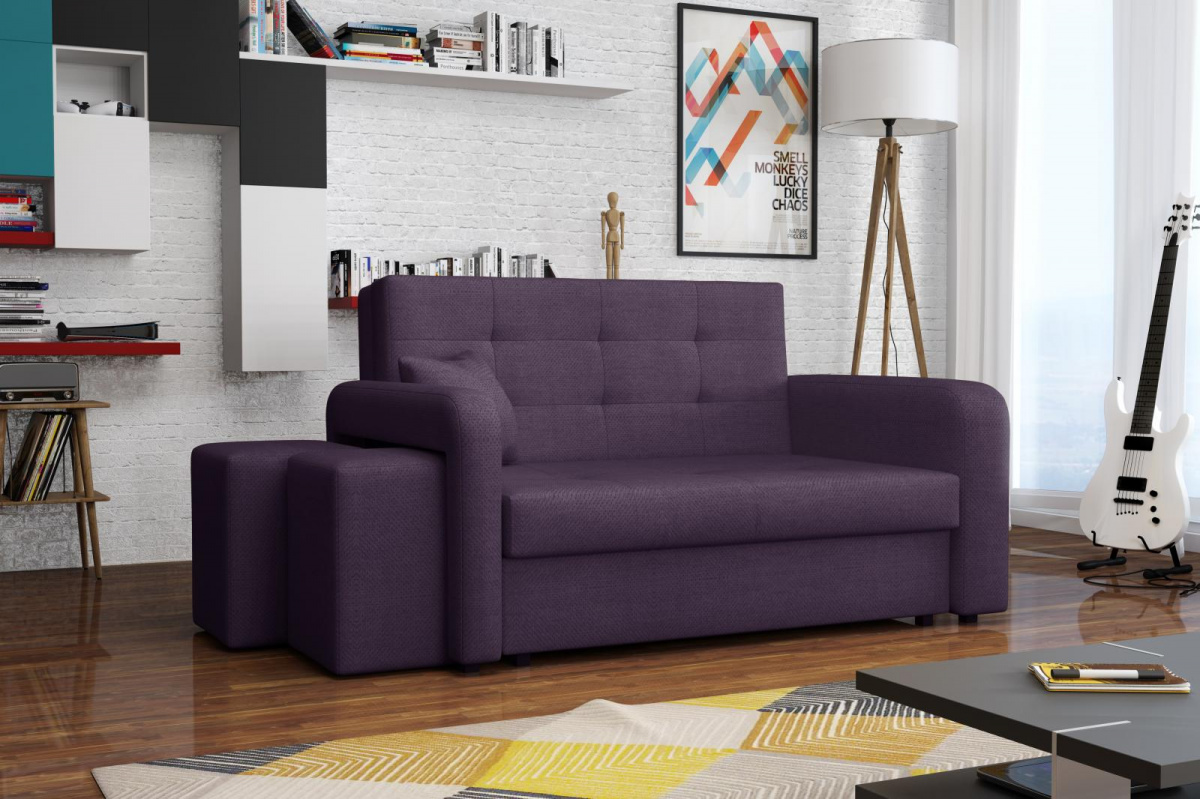 Rozkládací pohovka Vivian je díky svým rozměrům vhodná i do menších pokojů. Své uplatnění najde nejen v obývacím pokoji, ale také v dětském, studentském, nebo hostinském pokoji. Jednoduchým rozložením pomocí automatu, získáte lůžko k příležitostnému přespání Vaší návštěvy. Výplň sedáku tvoří vlnité pružiny v kombinaci s PUR pěnou. Pohovka je potažena kvalitní látkou a nabízíme ji v několika trendy odstínech. Pohovka disponuje i nepostradatelným úložným prostorem, který využijete např. na deku a polštář. V ceně pohovky je 1 dekorační polštář a 2 taburety, které jsou důmyslně uložené v područi pohovky. Taburety můžety využít k sezení, nebo k podepření nohou při odpočinku. Ostatní vyobrazené dekorace nejsou v ceně. Vlivem nastavení monitorů, nebo displejů telefonů, se zobrazení barev na fotograii může od skutečnosti lišit. Vyobrazené dopňky a dekorace nejsou v ceně.