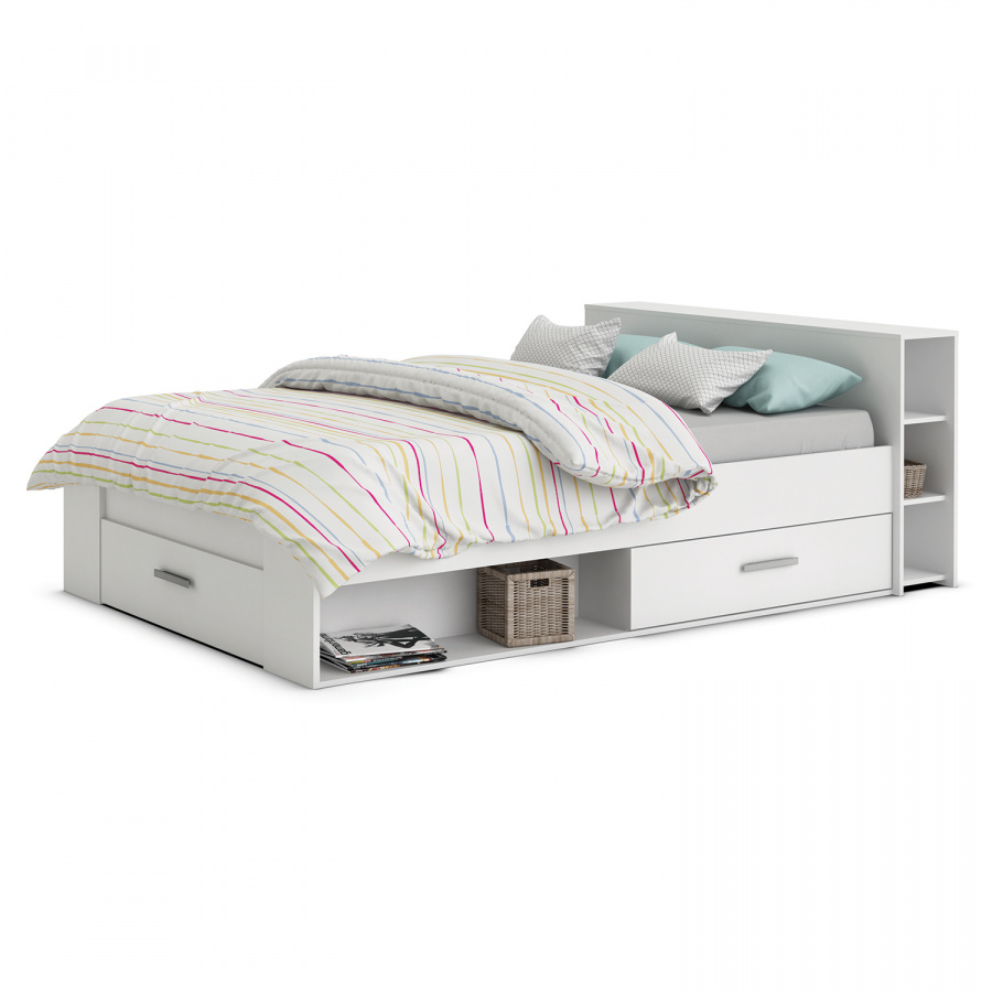 čelo postele slouží jako knihovna, 3 velké úložné zásuvky, výška sedu cca 51 cm
