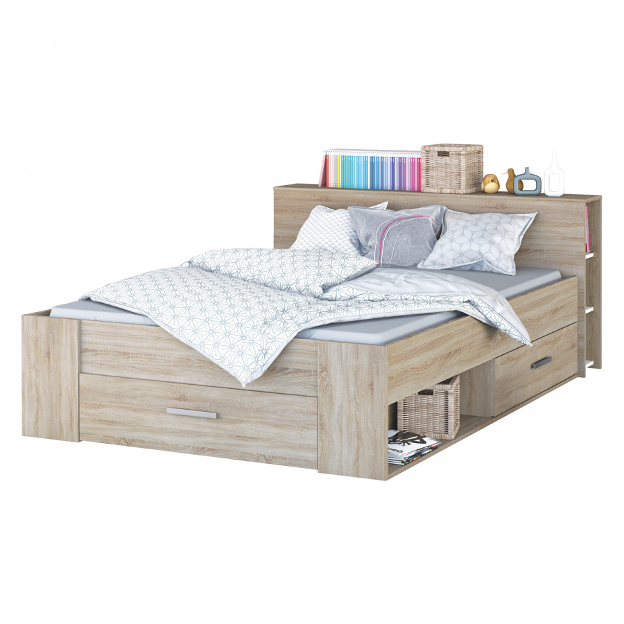 čelo postele slouží jako knihovna, 3 velké úložné zásuvky, výška sedu cca 51 cm