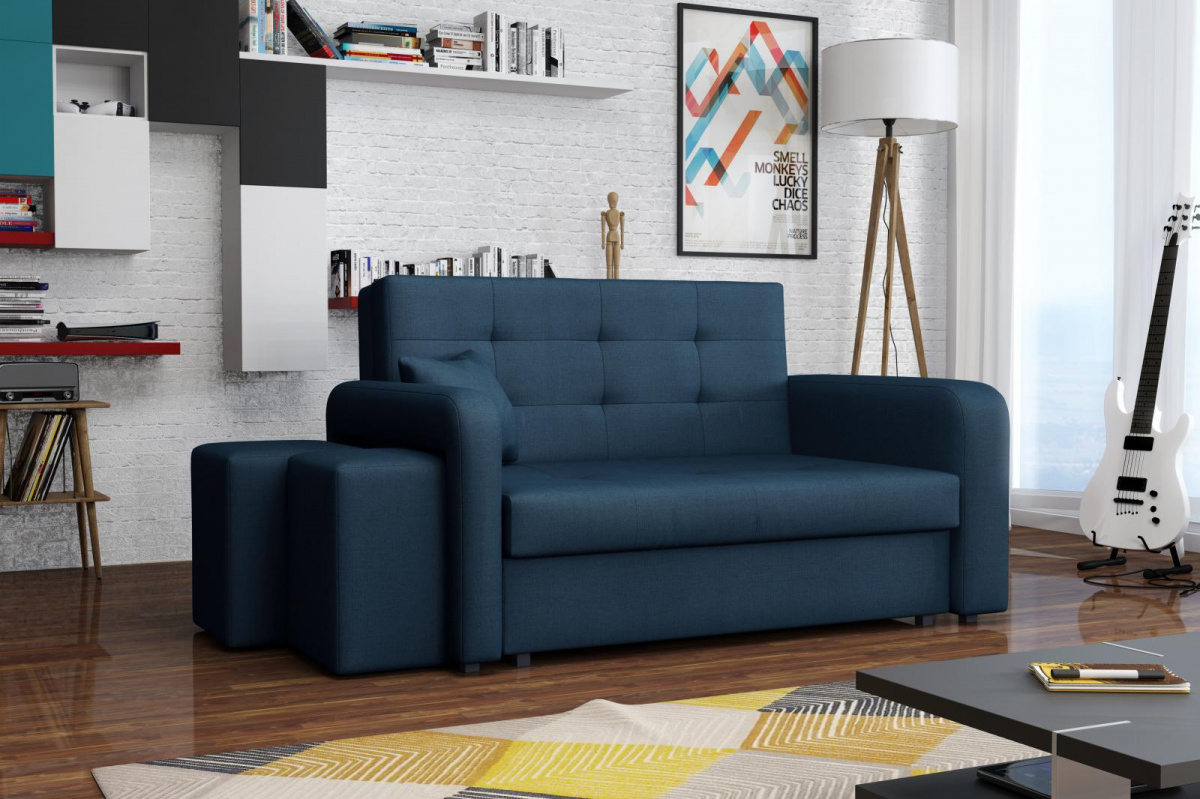 Rozkládací pohovka Vivian je díky svým rozměrům vhodná i do menších pokojů. Své uplatnění najde nejen v obývacím pokoji, ale také v dětském, studentském, nebo hostinském pokoji. Jednoduchým rozložením pomocí automatu, získáte lůžko k příležitostnému přespání Vaší návštěvy. Výplň sedáku tvoří vlnité pružiny v kombinaci s PUR pěnou. Pohovka je potažena kvalitní látkou a nabízíme ji v několika trendy odstínech. Pohovka disponuje i nepostradatelným úložným prostorem, který využijete např. na deku a polštář. V ceně pohovky je 1 dekorační polštář a 2 taburety, které jsou důmyslně uložené v područi pohovky. Taburety můžety využít k sezení, nebo k podepření nohou při odpočinku. Ostatní vyobrazené dekorace nejsou v ceně. Vlivem nastavení monitorů, nebo displejů telefonů, se zobrazení barev na fotograii může od skutečnosti lišit. Vyobrazené dopňky a dekorace nejsou v ceně.