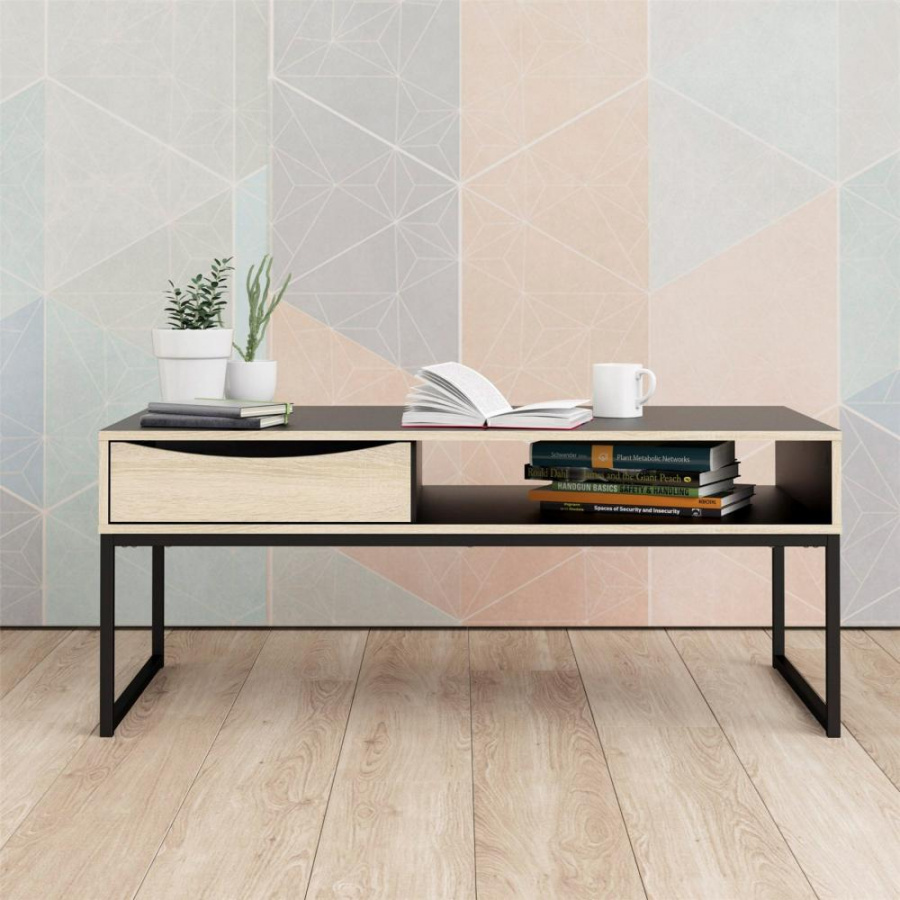 Stolek Sheba je dostatečně velký na vše co si budete potřebovat odložit. Klidně i unavené nohy po celodenním maratonu. Stolek má praktický odkládací prostor a zásuvku, kde můžete můžete umístit vše ostatní, co Vám zrovna bude na stolku překážet, ale potřebujete mít po ruce. Stolek je zhotoven z lamina které je odolné a snadné na údržbu. Kovový U profi, na kterém stolek stojí, mu dodává nádech industriálního stylu. Součástí balení je montážní návod včetně všech spojovacích prvků Je dodávaný v demontu a součástí je montážní plánek včetně všech potřebných spojovacích materiálů. Vyobrazené dopňky a dekorace nejsou v ceně. Nábytek je dodáván z Dánska, proto doporučujeme ověřit dostupnost zboží.