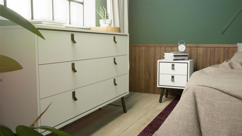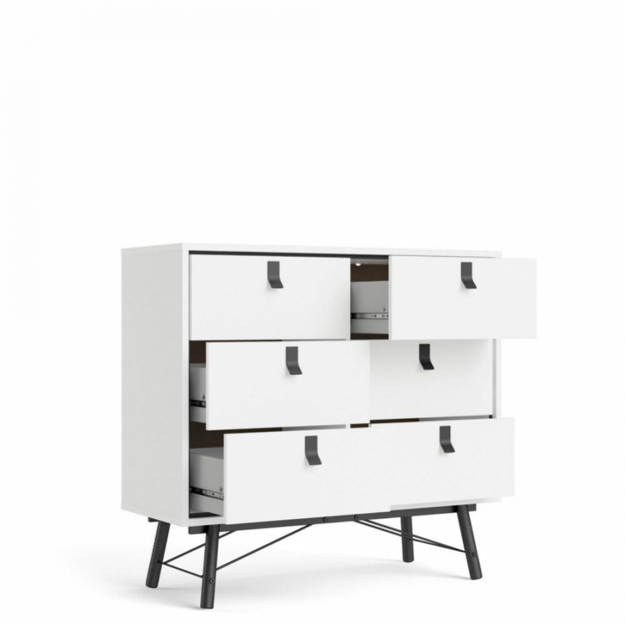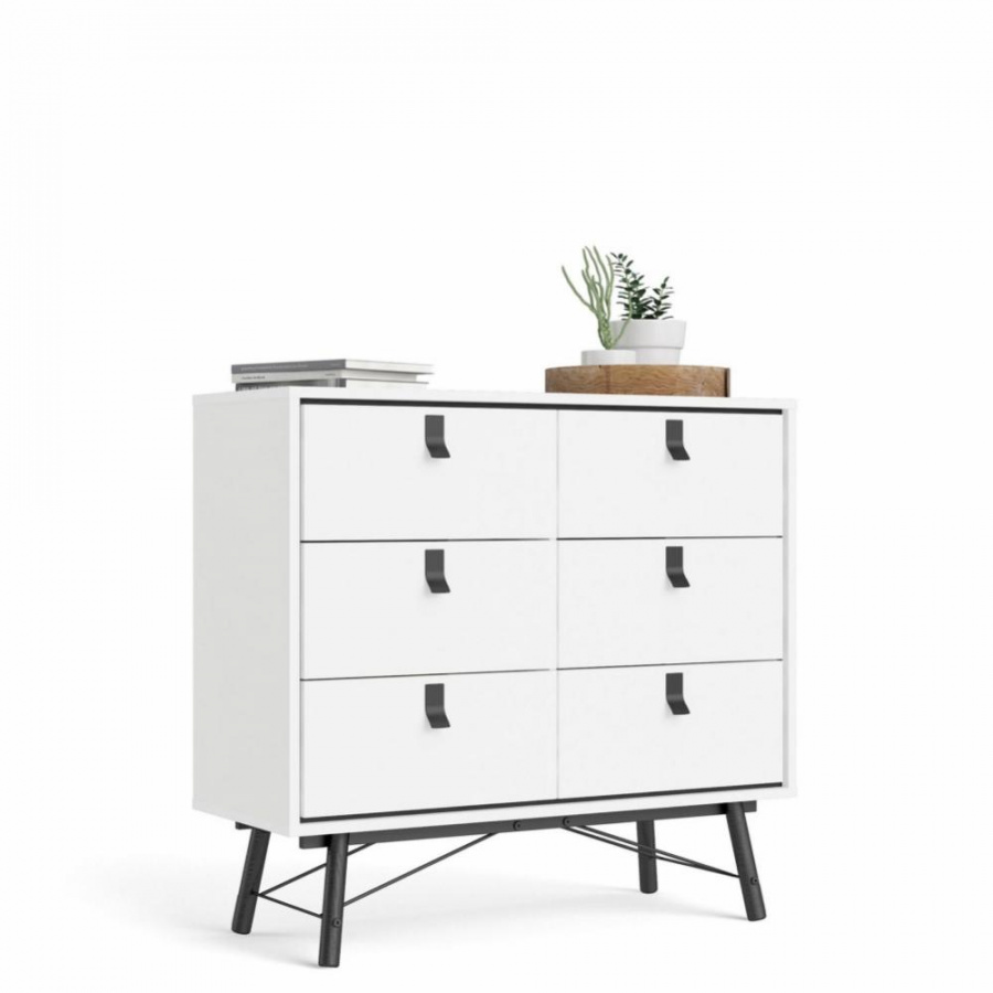 Komoda Rain je skvělou variantou, jak rozšířit úložný prostor ve Vašem bytě a zároveň mu ponechat vzdušnost. Komoda je vyráběná v souladu s ohledy na životní prostředí a navíc je praktická a funkční. Provedení komody nabízí dostatek úložného prostoru a spoustu možností využití nejen v obývacím pokoji. Výborně se hodí také do ložnice, ale i do pracovny či předsíně. Nožky, na kterých komoda stojí, jí dodávají nádech oblíbeného retro designu a prostor pod komodou se lépe udržuje v čistotě. Je vyrobená z lamina, které je odolné a snadné na údržbu a můžete ji doplnit dalšími prvky ve stejném designu. Cena je u vedena za komodu, která je vyobrazená na úvodní fotografii. Vyobrazené dopňky a dekorace nejsou v ceně. Nábytek je dodávaný z Dánska, proto doporučujeme ověřit dostupnost zboží.
