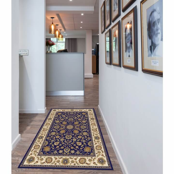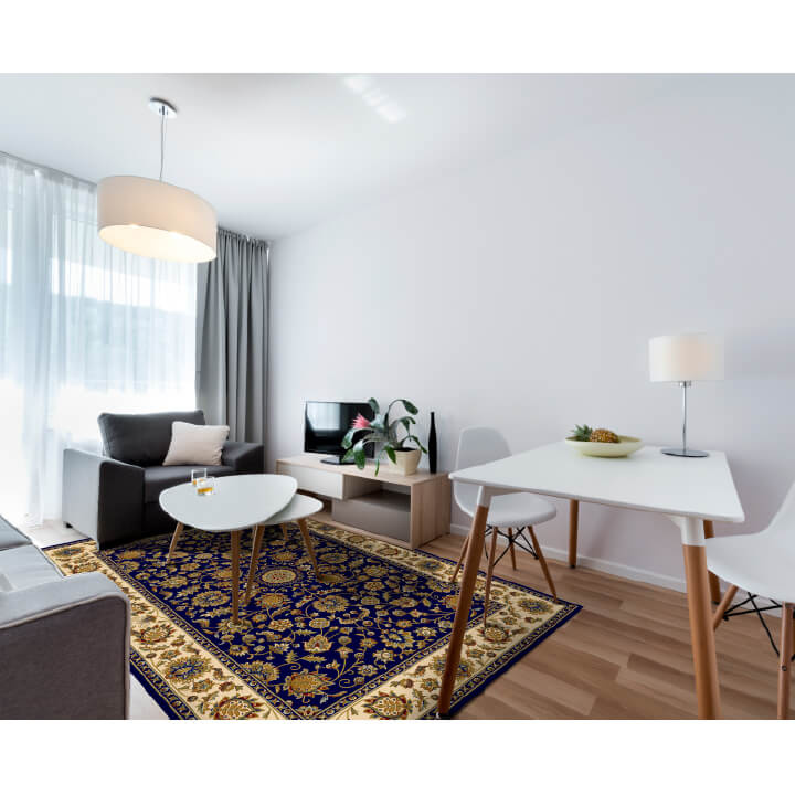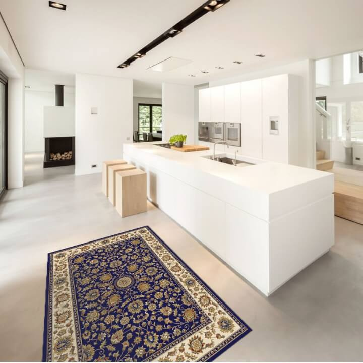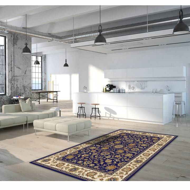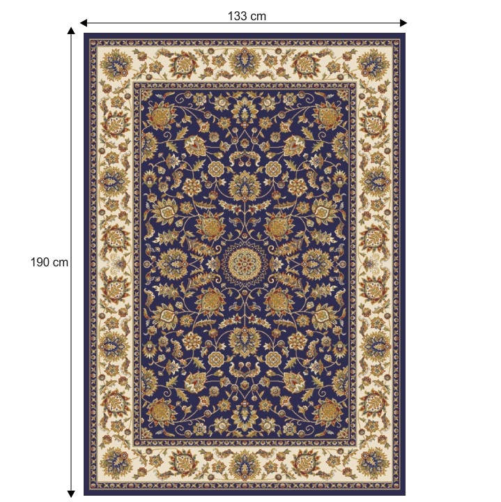 KENDRA TYP 1 koberec ze 100% polypropylen Barva: tmavě modrá / mix barev / vzor Rozměry: (ŠxD): 133x190 cm Tloušťka koberce: 0,8 cm Gramáž: 1550 g / m2