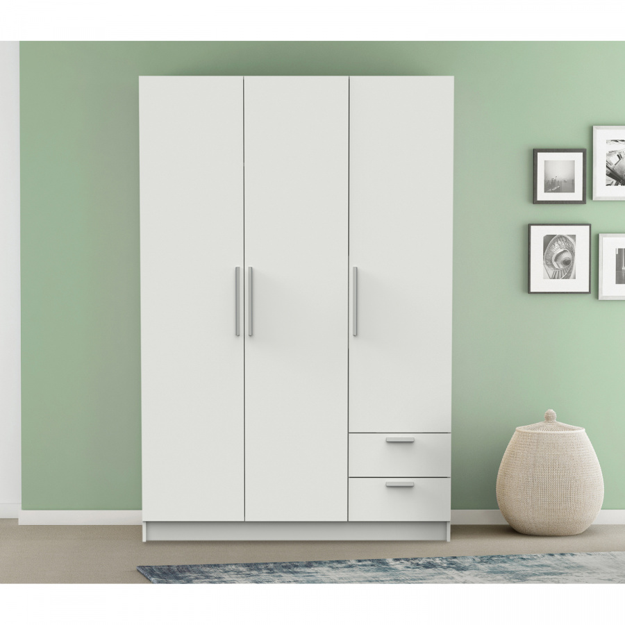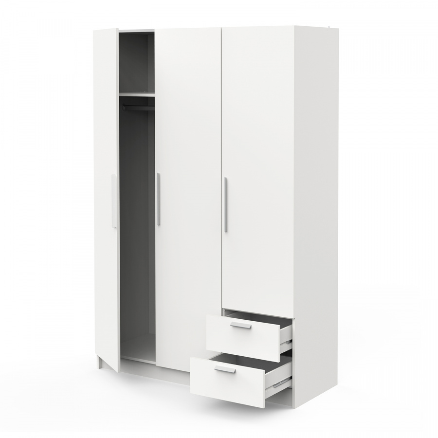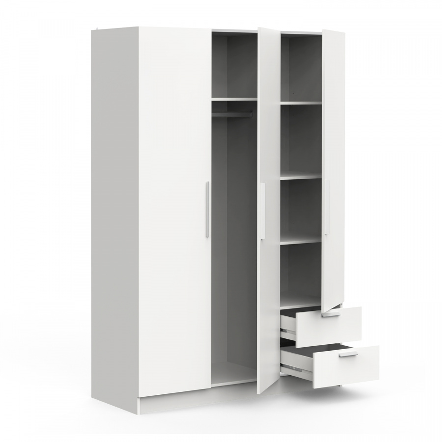 v užší části 3 police a 2 zásuvky s kovovými pojezdy