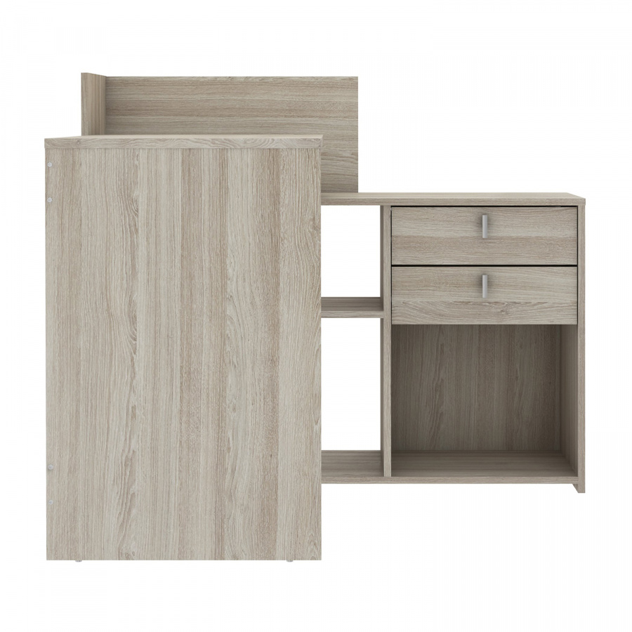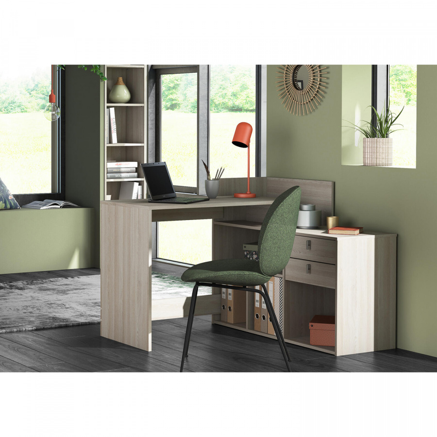 2 zásuvky s kovovými pojezdy, otevřené i uzavřené police